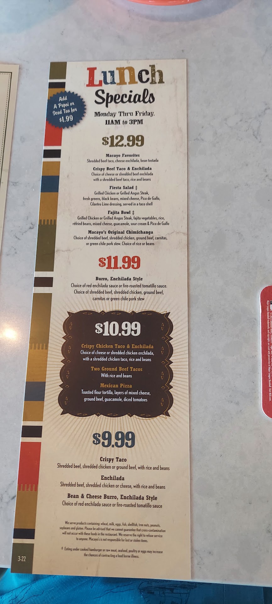 Read moreExtremely Disappointing Experience at this location of Macayos. I am writing to express my extreme disappointment with my recent dining experience at Macayos in Litchfield Park/Verrado. This restaurant was once a favorite, but this visit was truly abysmal. The service was incredibly poor. We went for a Sunday evening dinner. There were only about 4 tables in the restaurant occupied. From our arrival there were NO staff on the floor not even the bartender. This was about 70% of our visit. The employees were in the back. Our server (Swift) did not listen and completely disregarded our requests after several repeat requests. She even slammed a plate of limes on the table, making us feel like an inconvenience. The food quality was also unacceptable. The chips were undercooked, the rice was hard, and the entire meal was cold and not fresh! To make matters worse, the staff seemed completely indifferent to our concerns. I sincerely hope this feedback is taken seriously and that improvements are made. I will not be returning to this location in the foreseeable future.