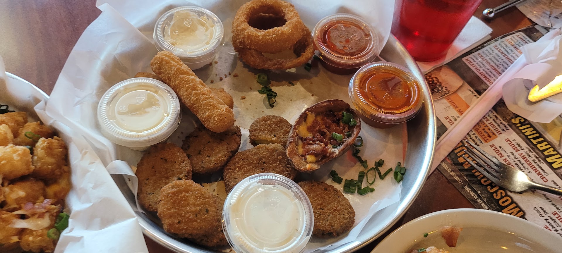 Food was 3-4 stars and I’d say ranged from fair to very good in taste and quality. I can vouch for the BBQ burger and fries. The cheese pizza I tried was good and quality. Any items similar to those are a safe bet. The appetizer items I tried (fried cheese, potato skins, onion rings) were your typical bar food quality. Not bad, but not great. However, many people at our table did enjoy the fried squash or zucchini. Eggplant? I can’t remember, but it was better than any of the other appetizers.