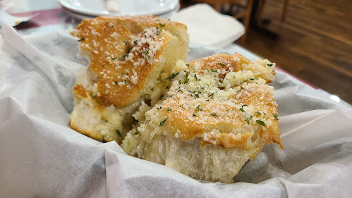 We went in for dinner for our first time and there were 3-4 tables already occupied. The waitress seemed overwhelmed and trying her hardest to take care of customers. My husband had ordered the sausage parmigian and I, the Chicken Marsala. There was no soup of the day, so salads were brought out ( the choice was soup or salad). I had the house dressing which was herbs, olive oil and a nice balsamic, my husband had ranch. Bread knots were delivered and were delicious. Then the entrees. The sausage parmigian came out the with large side of spaghetti. The Chicken Marsala come in a bowl with chicken pieces or chunks over pasta in a thin soupy sauce that tasted nothing like Marsala. Unfortunately, all I could taste was garlic.
