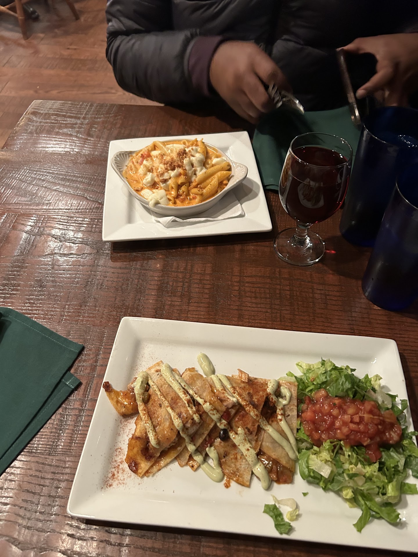 Read moreFirst visit on Sunday 11/12 at 2:00 p.m. The place was mobbed. The 3 hostesses that were seating people did zero to greet people as they came in the door and were met with a line. A line to place your name on a list or a line to wait for a table to open up? Your guess is as good as ours and those that came in behind us. Within a 1/2 hour we were seated and greeted by a very tired looking waitress. We ordered 2 different appetizers ( fried pickles & mozzarella sticks). The menu advertised 8 mozzarella sticks, but there were only 7. Nothing fancy with the mozzarella sticks as they seemed to have come from the freezer. The fried pickles could have been made on the premises, but both were average. Lunch was salads for both my husband and I. I ordered the Apple salad which came with huge bib lettuce leaves that had to be cut vs. having been torn before assembling the salad would have made eating it much easier. There were grapes in this salad, 4 to be exact! Two where already cut in half when I received the salad and 2 were left whole. There was hardly any apple included (perhaps 1/4 of a small apple) and after eating the entire bland salad I couldn't put my finger on what was missing to give it flavor, oh yeah, the blue cheese crumbles that were supposed to be on it. I only learned this after looking up the menu online as we waited for our waitress to return to our table. My husband's Caesar was just average too. Overall, this place is busy because it is one of the few dining options for people visiting the shops at Peddlers Village. The food and service was mediocre at best. This was our first visit to Peddlers Village and we came to use a food gift certificate that we were given. After being less than impressed with our dining experience we have no desire to come back...