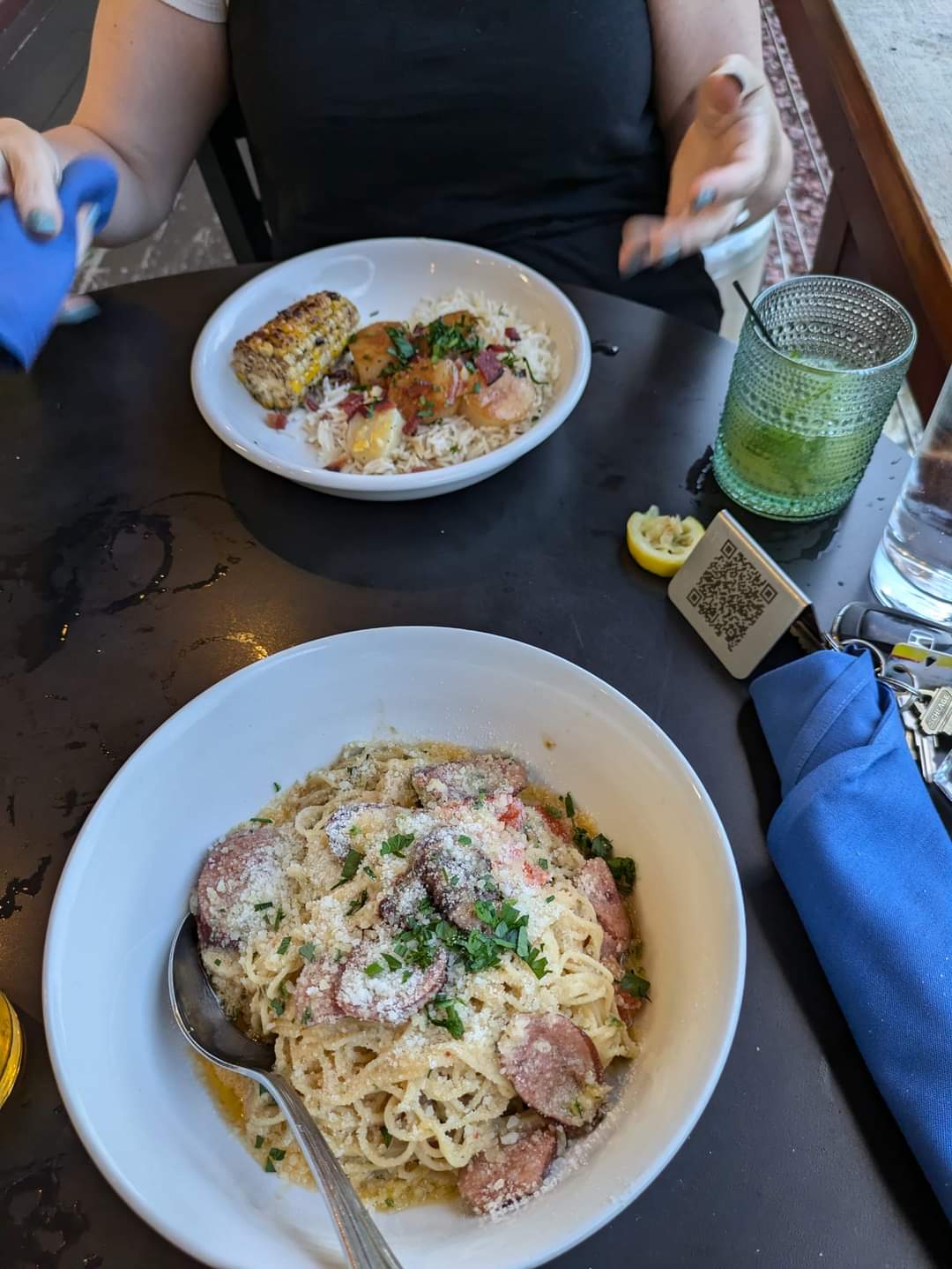 We went here the second day of our honeymoon. The Hostess asked us if we wanted to sit inside or outside. I said outside and she handed us menus and said to seat ourselves. I noticed everyone else who came in she greeted, had conversation with and personally set them at their outdoor table. We are an interracial couple, and I wondered if there was some unconscious bias going on after seeing how the other guests were treated.