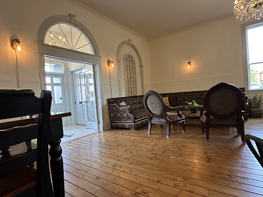 Indoor Seating: large sectional couch, another couch in a small side room, several tables of varying sizes