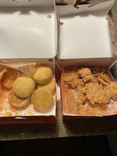 I had been going to this Popeyes location because the lines are never long. There are two reasons for this. First, it is a pain to find the entrance to this place. Secondly, the service is always sub par. My kid decided he wanted a Chicken Sandwich. I pull up the speaker. There are no cars in the drive through. Silence. I wait a few minutes, thinking maybe they do not realize someone is waiting. Still silence. I finally spoke up, "Hello?" The young girl comes up the speaker and never apologizes for the wait. You can hear in the tone of her voice she does not want to be there. She never asks if I want anything else. I have to give her both orders and she quickly tells me the order total and to pull up. I pull up to the window and she is still giving me attitude like this the last place she wants to be. She takes my credit card and I comment in a sarcastic tone to my kid, "Wow.. She is really friendly." The only good thing about this place is I got my food quickly. There was another car who had to pull up and wait for his food. I did risk it by not checking my order when the woman tossed me my bag. Luckily, the order was right.
