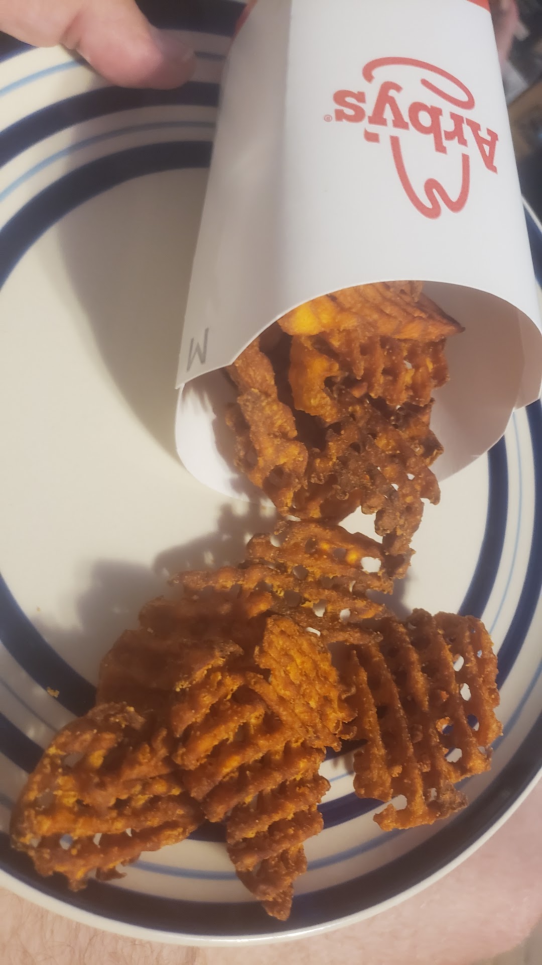 They have good sandwiches. The classic roast beef is a little plain so when I get home I'll sometimes put my own cheese or my favourite barbeque sauce (from lucille's) on. The beef n cheddar is good, I'm personally not a fan of the onion bun it uses and I'm also not fond of the sauce that's on it. My personal favourite is the 3 cheese roast beef, which used to be 3 cheese steak but I'm pretty sure they changed it to make more profit on the roast beef vs. the steak. It is, however, still my favourite. It has crunchy onion straws on it and 3 cheeses which I believe are cheddar, swiss, and then some sort of creamy cheese (there's some sort of white cream sauce on the sandwich which I assume to be cheesy in nature). I know I've had the philly before but I honestly can't remember what it was like but I guess I didn't get it again for a reason 🤷♀️. The French dip & swiss is a close second for me. Both the 3 cheese and the French dip come on longer, little baguette looking buns, they're soft and have more body to them than the original buns. Anyways, the French dip itself I'm pretty sure is just normal roast beef topped with swiss, and then it comes with a decent sized little cup of au jus. It's usually just over the right amount of jus, so you'll have plenty for the sandwich with some left over. Off of sandwiches, the very best item on the menu is their curly fries. Best eaten when they're hotter than the gates of hell, they're greasy and oh-so-bad for you but they taste GREAT. The seasoning isn't overly peppered or salted, you get an array of fries, big round curls, tightly wound spirals, arcs of more broken-off fries, little crispy fry nuggets. They're all good. My personal favourite dip for them is mixing their ranch and ketchup. Their house ranch sauce is VERY thick (like, turn the container upside down and it'll stay put kind of thick), so I add the ketchup for a little sweetness and also to thin it out a bit. My dad has previously ordered the loaded curly fries from a coupon, but by the time we got home (after eating fresh hot fries in the car on the way), the various sauces on the loaded fries had made them soggy and they weren't hot and fresh, so unless you're dining-in to eat them ASAP, I would not reccomend ordering (basically, don't get these to-go.). We've also gotten the mozzarella sticks, just to try out. The breading on them is a little peppery and spicy. Not sure if there's any hot spices in it or if it's just spicy from the peppering. Either way, they're decently flavoured and have a good crunch to them. However, and I don't know if this is their standard for them or I just got old sticks or something, but the cheese wasn't all gooey and melty like how I prefer my mozz. sticks. Instead, the texture was more squeaky like a deep fried cheese curd. I didn't dip in the marinara sauce because I'm not a fan of any marinara sauce. On to desserts, I've had one of their cookies before, it was a triple chocolate ghirardelli cookie that was just absolutely divine. I believe the normal policy is to give them to you hot. They're super rich and they melt in your mouth so I wouldn't reccomend eating more than one at a time to avoid tummy aches, but they're the kind of cookies where you'd want to ignore that potential tummy ache and eat 12 of them with a glass of milk. We've also gotten the oreo bites, which were disappointing. The flavour of the dough is underwhelming and barely noticeable, and the cream inside tastes nothing like oreo cream, which was a big...