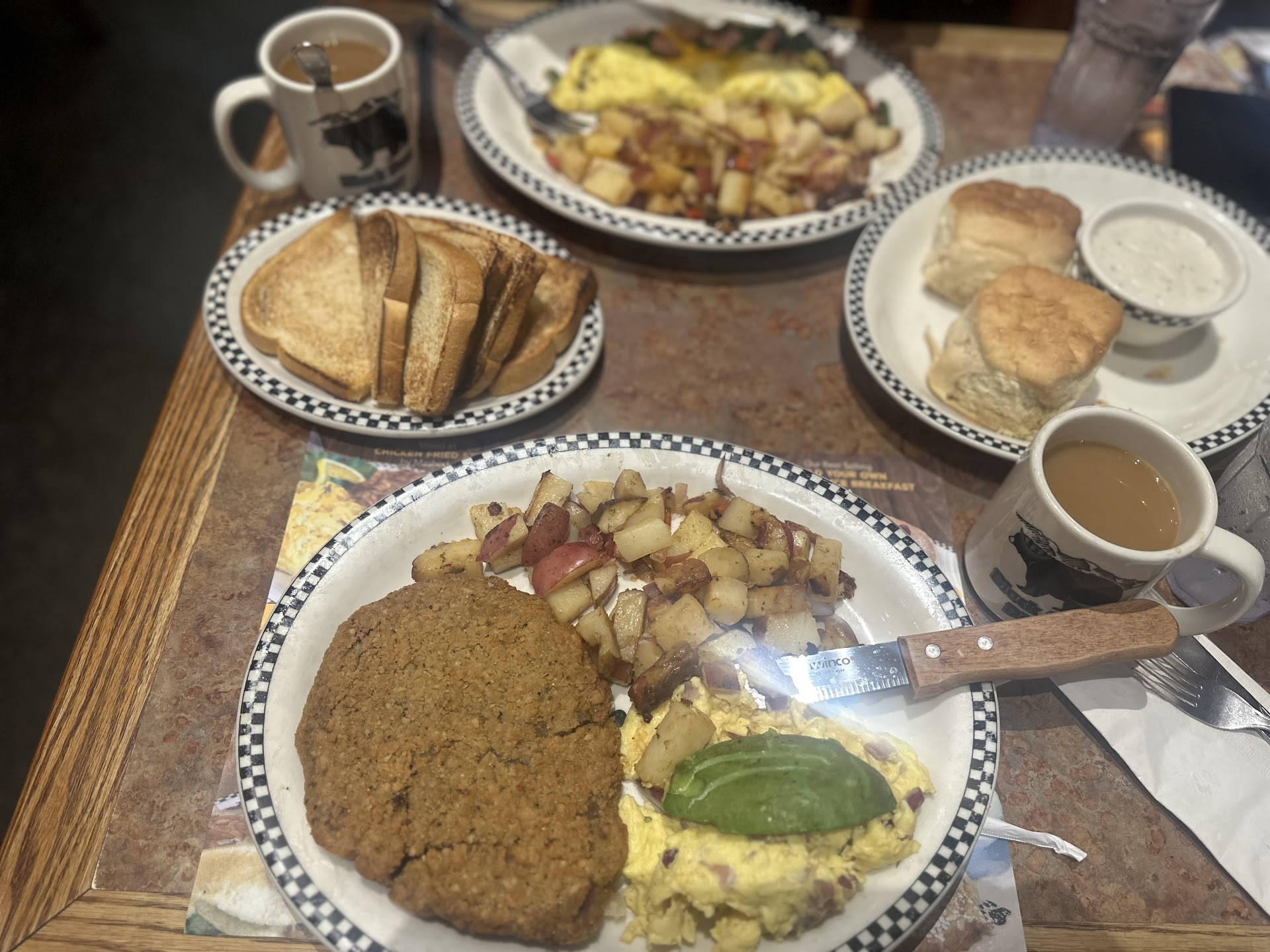 Read moreIt was our first time visiting this place and we were a little bit unsure about it reading mixed reviews. Upon entering what felt like a cabin in Big Bear... we were amused first of all, then we were happy to be greeted by one of the nicest host we have ever had. A nice lady named... Christina, sat us immediately. She answered all our first timer gazillion questions with a smile on her face and she gave the nicest, funniest, responses she could give in her opinion. đ We had a good laugh and then made our choices. Low and behold, and surprisingly enough, we were happy with our choices made. My review is a good one. I had the 2, 2, and 2; and it was pretty darn good. The eggs were cooked perfectly and the bacon was very, very good from other establishments I have been to. I personally make better F.T. though...Lol, they were pretty good. đ The cornbread muffins were too good and we restrained ourselves to just having two. Highly recommend to get some of those. đ My Mom had the Salmon and she didn't even talk because she loved it so much and kept eating it. đ€Ł My daughter had the pot roast and it very was tender and OMG... the red roasted mashed potatoes did remind us of good ol' Disneyland. So in our opinions we really like the dishes we had and can't wait to return to try other items. đ„°Oh, and one more thing... I left with the prettiest stone bear necklace that I can't wait to wear. Till next time, thank you Black Bear Diner, Christina, and staff for a great...