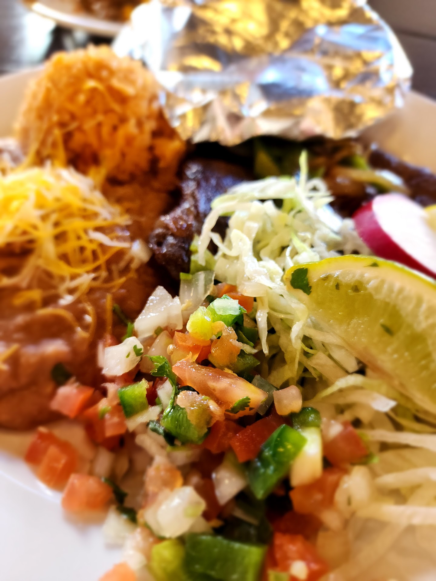 I ordered cheese enchiladas. I wanted a single enchilada, but there’s no à la carte options for that, so I ordered a full dinner. There was an option to remove the beans and rice, but the price stays the same, so expect to full price, even if you take the option they offer to remove items.