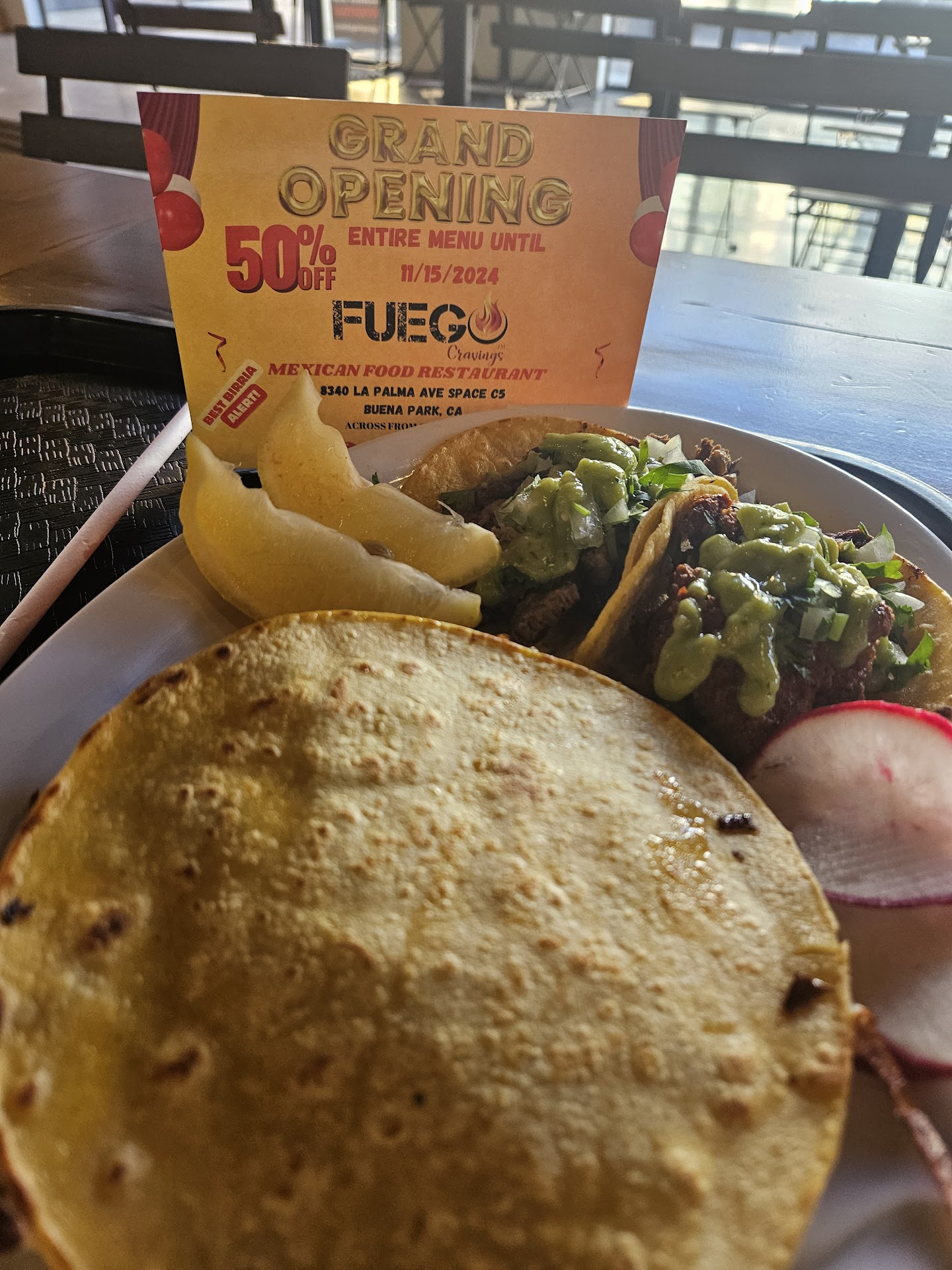 Read moreWent to Fuego Cravings in Buena Park and won’t be coming back. The staff had an attitude and no manners — not welcoming at all. Kitchen area is a mess with filthy floors and boxes scattered everywhere. The beans tasted like they came straight out of a can, and the nachos looked like something from a gas station that’s been sitting for hours. Definitely not worth the price for the low quality food served. I've had better frozen microwavable tacos and burritos compared to this place. The only great thing about coming here was...
