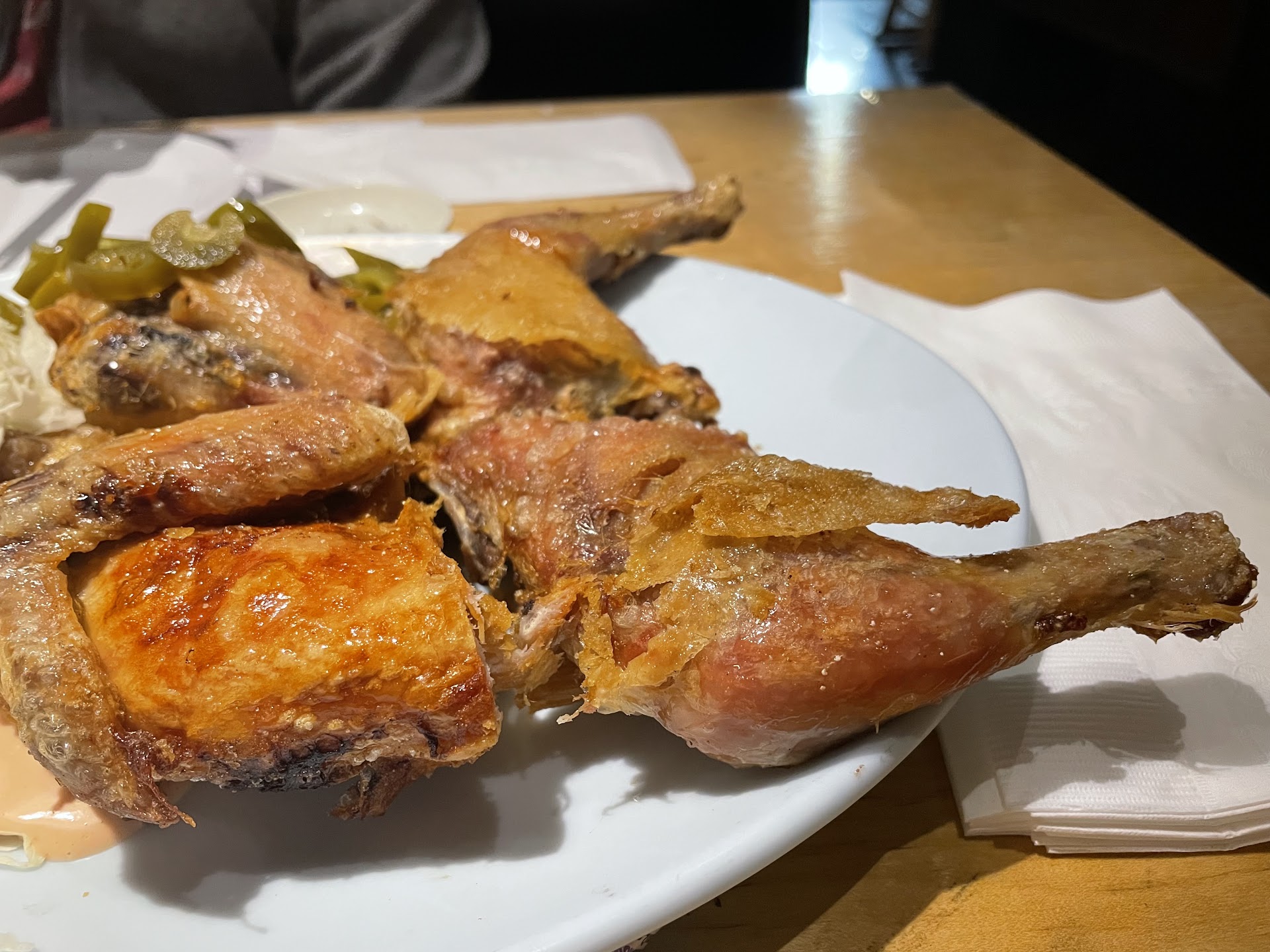 Chi-mek(Korean shortened word for chicken and beer) place with other bar foods. Chicken was average, and cooking oil seemed really old. Worst part of this chimek combo was the flat amber lager (pictured) which had watered down taste. When it was pointed out to the server, he just kinda shrugged it off. We ended up leaving half a pitcher untouched.