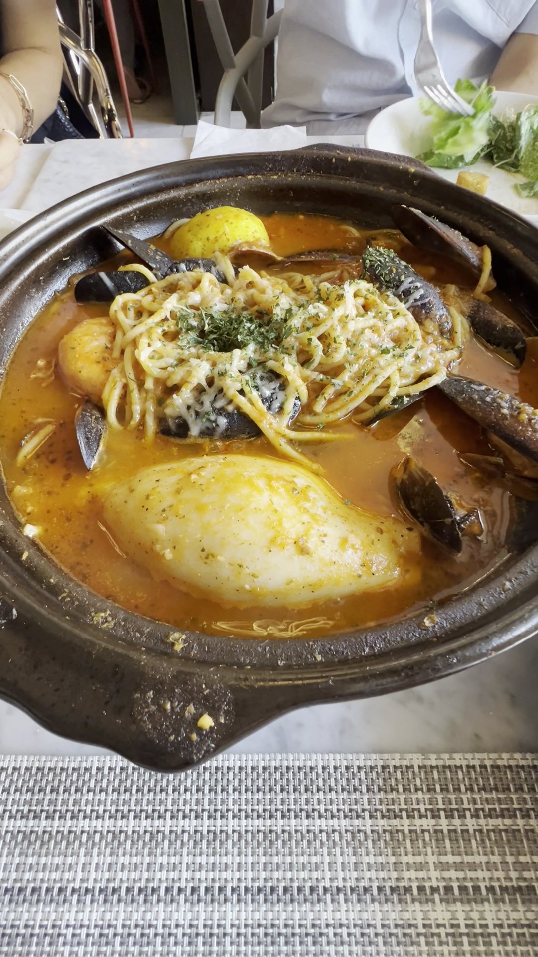 La Jota was recommend, but it tasted like the bottled had been open for several days.. When we started eating, most people had left and more servers were walking around -- singing, talking, giggling, flipping bread baskets, etc. This made us very uneasy, making it very uncomfortable. When we didn't even finish half our salad, the server kept on asking if he could take our plate away. If you can't see the most obvious things, you shouldn't be out serving.