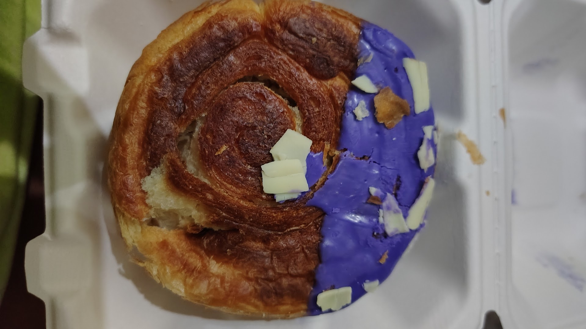 The croissant roll, advertised as being stuffed with boysenberry custard, contained only a small dab of custard on the top, rather than being fully stuffed as described. Similarly, the boysenberry tart lacked any custard at the bottom or elsewhere, making it less flavorful than anticipated. This was surprising, considering that other offerings like the mixed fruit tart and strawberry tart both featured a generous amount of custard. What you do get is a ginormous scoop of boysenberry jam just a big pile of jam on your tart.