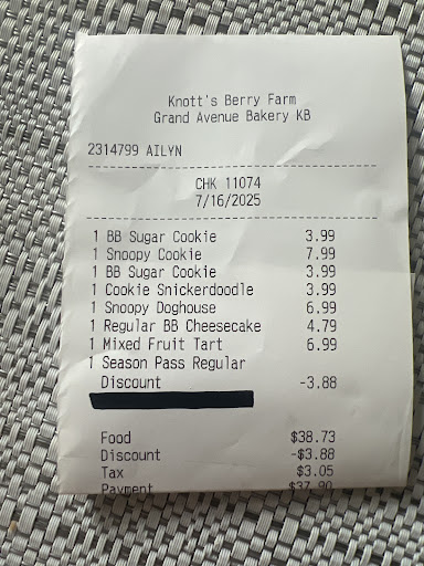 Ā Ā Ā Read moreI recently visited Knott's Berry Farm Bakery with high expectations, especially for their boysenberry-themed pastries. Unfortunately, my experience was underwhelming.