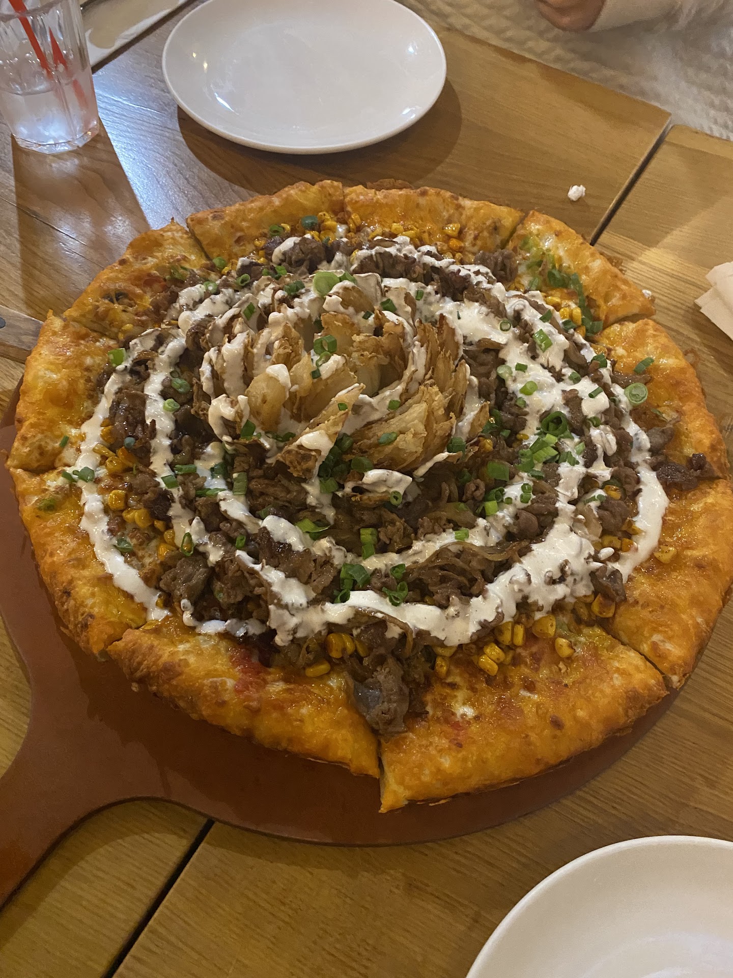 Read moreI visited Buena Park today specifically to try their Kingsley pizza and kimcho kimchi nachos, and they did not disappoint! The Kingsley was absolutely worth the trip — loaded with well-marinated meat, cheese, corn, blooming onion and a variety of other flavorful toppings. The highlight was the crust, which had sweet potato built in, adding an extra layer of flavor to every bite. It was cooked to perfection, not too crunchy and not too soft.