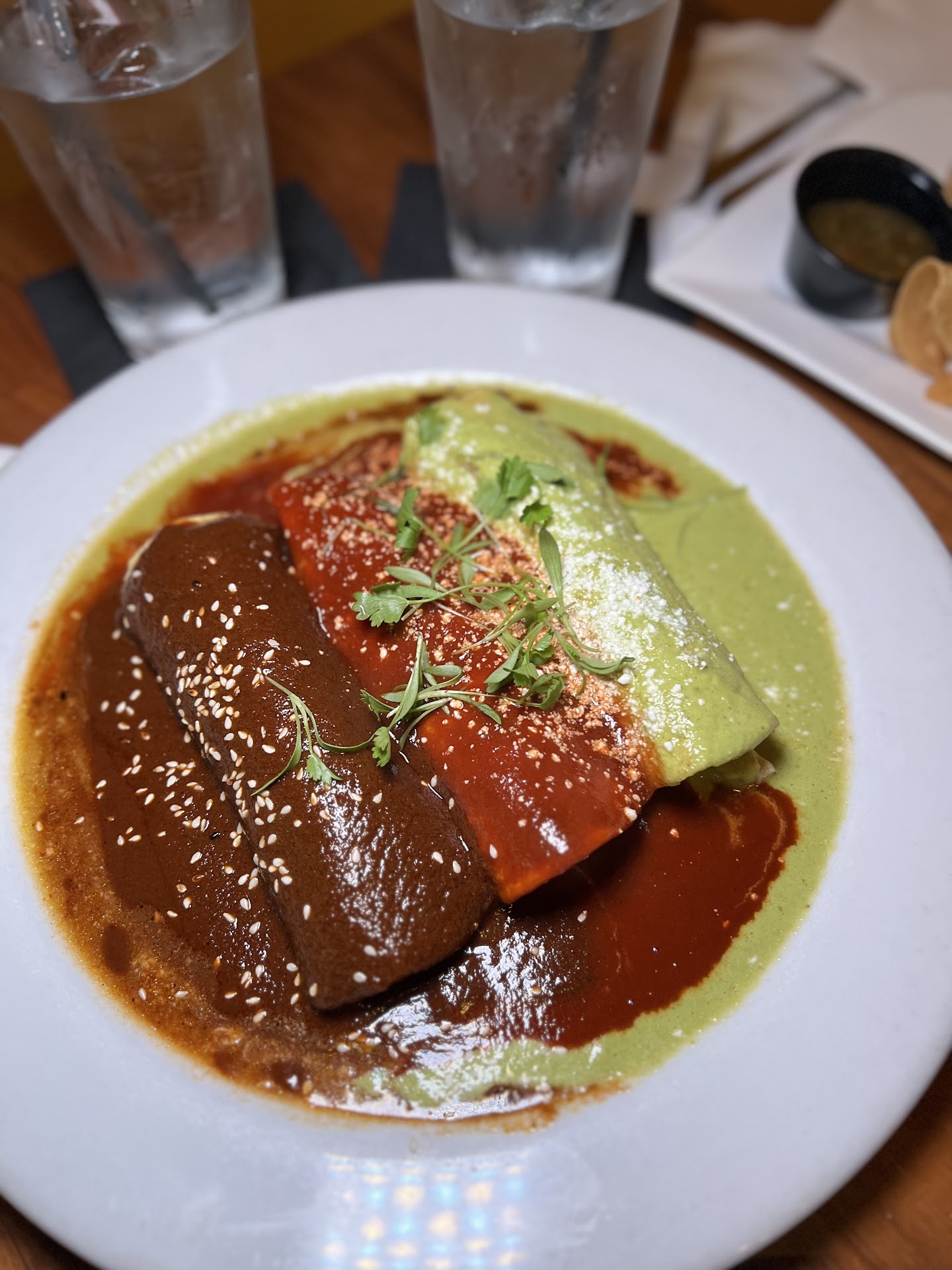 With so many competing restaurants its surprising this place has so many 5 star reviews. A seating capacity of observably about 100 people, there were no more than 5 tables of 4 taken when we arrived. Not what I'd consider close to busy when our party of 8 waited patiently. After being greeted, the host took about 7 minutes to seat us, offering a high chair for my little one, (which never came, so I grabbed one while watching the host wander off to go play on her phone) I guess she had better things to do. Waitress finally came to take drink orders, and you could instantly sense the "spend all your money on our overpriced drinks" that came out of her mouth along with a hurried impression of "I know you're all just getting water anyways" when she looked up at you (side note we got water and horchatas). Not a great vibe for starters, but here goes the college try for benefit if the doubt. I opened the door with "what are any specials?" that allows the waitress a 2nd shot of ANYTHING; only came back with a reply of "none on the weekends". No recommendation, no unique items, nothing but a "are you ready to order" as we just placed drink orders. Service needs a bit of work here. -1 Star of service.