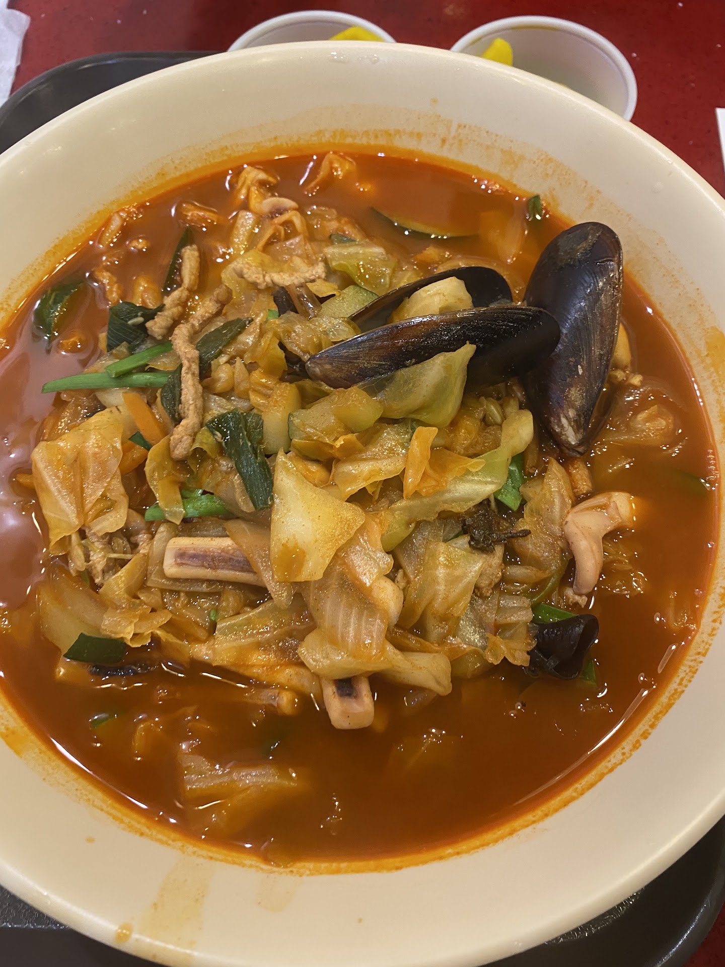If you canโt pronounce the names, then say the number of the dish โ pay and they give you a number. I really do enjoy spice and I know I would love them both unfortunately, I have a slight shellfish allergy so I havenโt even tried Jjamppong. Although I did come with my partner and encouraged her to try the soup, she decided on Bokkeummyeon instead. The jjajangmyeon was very good and flavorful, yes as most say the portion is enough for 2. I also tried a bit of the Bokkeummyeon, although good it was a bit too salty for me. Overall, I would highly recommend this spot if you are in the area and want to try...