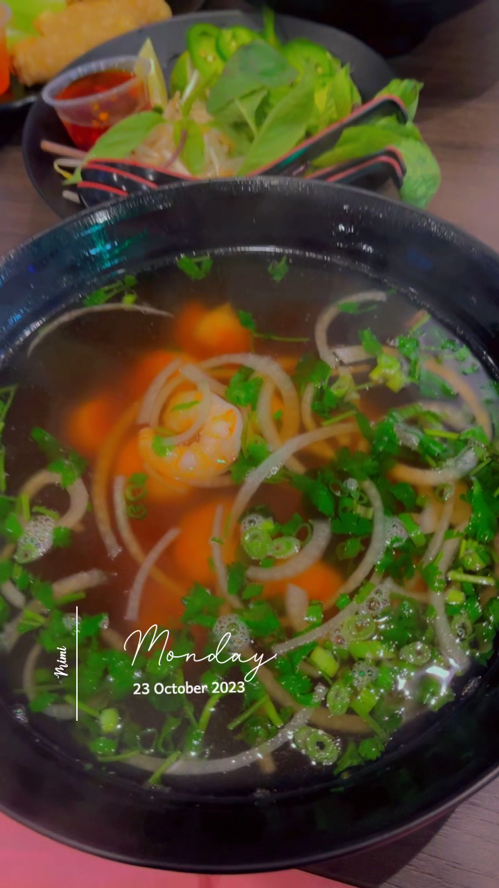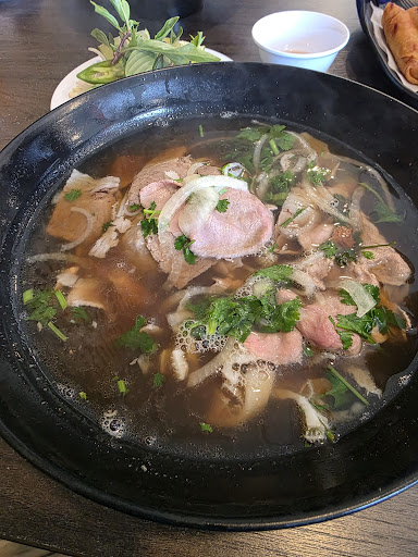 I ate the whole bowl of pho before I realized that I forgot to take a picture to do a review on this place. When my cousin and I enter this pho place, its has a really nice vibes. There was a really nice hand-drawing art on the wall as well. Kevin was the server who seated us. We both ordered the pho tai bo vien, and I specific ordered a side of rib. The foods arrived approximately 5 minutes because we came almost till their closing time (thank god they let us in). The bowl of pho gave such a nice aroma, the broths taste great, and the meats was tender. I ate my pho with the side of hoisin sauce, sriracha, sate, and lime to make the perfect balance of dipping sauce to dip the meat into. I recommend anyone who hasnโt come here to give it a try for yourself because I totally love it, and finished the whole bowl in less...