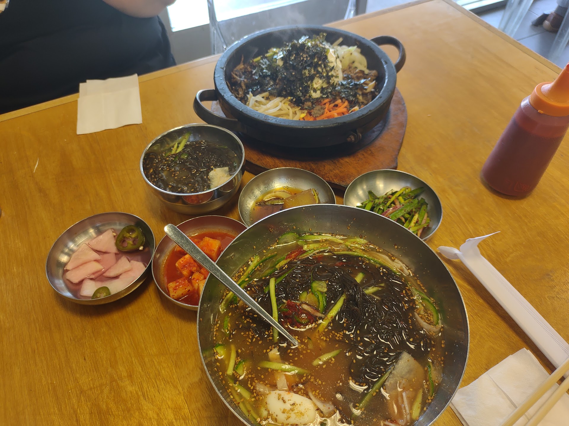 ย ย ย Read moreOver priced, extremely rude and disrespectful service. Have reviewed on yelp and owner responds to all negative reviews (thereโs a lot) with hostile responses. I guess thatโs no surprise from someone that has so many 1 star reviews on their extremely rude, aggressive treatment of customers. I was seated with my daughter at a tiny table right next to the bathroom and shared a wall with the open concept kitchen (almost as disgusting as the owners behavior) before we were eventually refused service and asked to leave because we moved tables. And the food is bland with small portions, and ridiculously overpriced. Youโre better off getting Korean at any of the countless respectable spots in the area. Owner at some point should see all the bad reviews about her behavior and develop some social skills or...