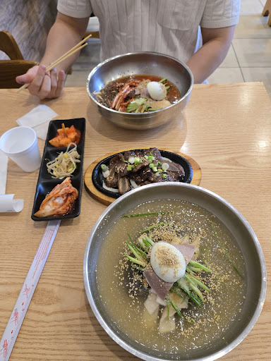 The kimchi dumplings are another must-tryâperfectly steamed with just the right amount of spice and packed with flavor. Pairing the cold noodles with their grilled short ribs (galbi) is the ultimate combo. The meat is tender, juicy, and well-marinated, complementing the noodles perfectly.