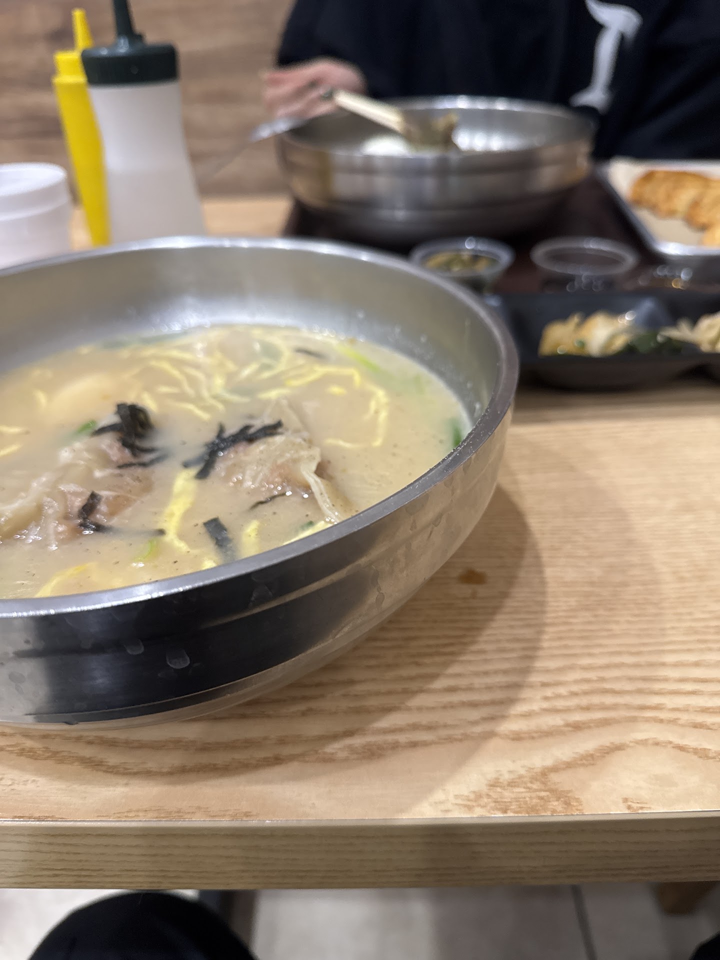 As others have said, this location does not compare to the one in K Town. To start, the free broth is served to you with your food and not self serve, which is fine, but it was undrinkable. Tasted like a cheap powdery version with little to no flavor. It was really what I was looking forward to, so terribly disappointed. That said, the other dishes we tried were pretty good. Cold noodles and galbi combo was pretty good. They were out of the tofu soup, so tried the spicy beef soup per the ladyâs recommendation. Soup was good, but the beef was not the shredded type I am used to. Was in small rectangular pieces and very tough. Service was very friendly, but we were the only ones there on a Monday evening around 6pm. Would I go back? Maybe if in the area, but not worth going out of...