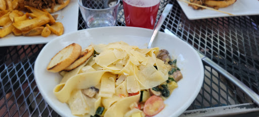 My lunch mates ordered an Octoberfest burger, a Brewery burger and a grass fed burger. I ordered the 1/4 lb. grass fed burger well done. I specifically requested it to be well but not overcooked and dry. Unfortunately that is exactly how I got it very well and dry as a bone - thus pretty much tasteless. Given that the food arrived relatively quickly and how dry and overcooked my burger was gave me the impression that it may have been an extra from lunch kept warm on the side of the grill instead of being cooked fresh. If it indeed was cooked fresh - the fry cook is in need of retraining. The grilled broccoli side which accompanied the burger was very tasty but barely warm - still I did enjoy that. At $10 for an average sized slightly below average burger and a few sprigs of broccoli, the value definitely wasn't there though. I did try their Amber Lager which was very good.
