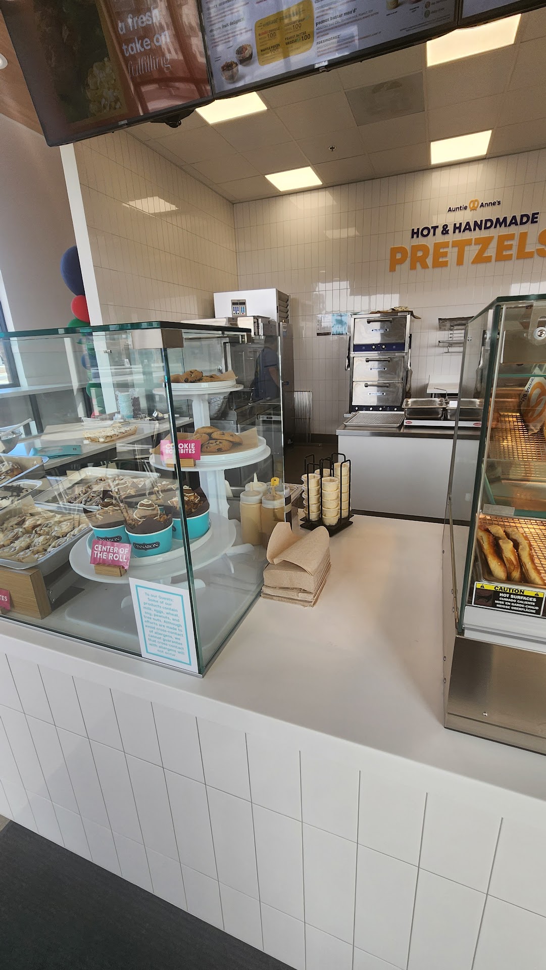 Read moretotal disappointment , i ordered 3 pretzles {regular} 2 regular size cinnabon , i received 1 regular pretz, 2 cin, - 1 cinn bun- the pretzles were barely warm, must of been sitting several hrs, stale- went for c bun, only 1 ,not 2 as ordered , the bun must of been sitting hrs as well ,dryed out and flavorless , 32.21 - holy&^& . check your order people. rip off ,i rarely wright...