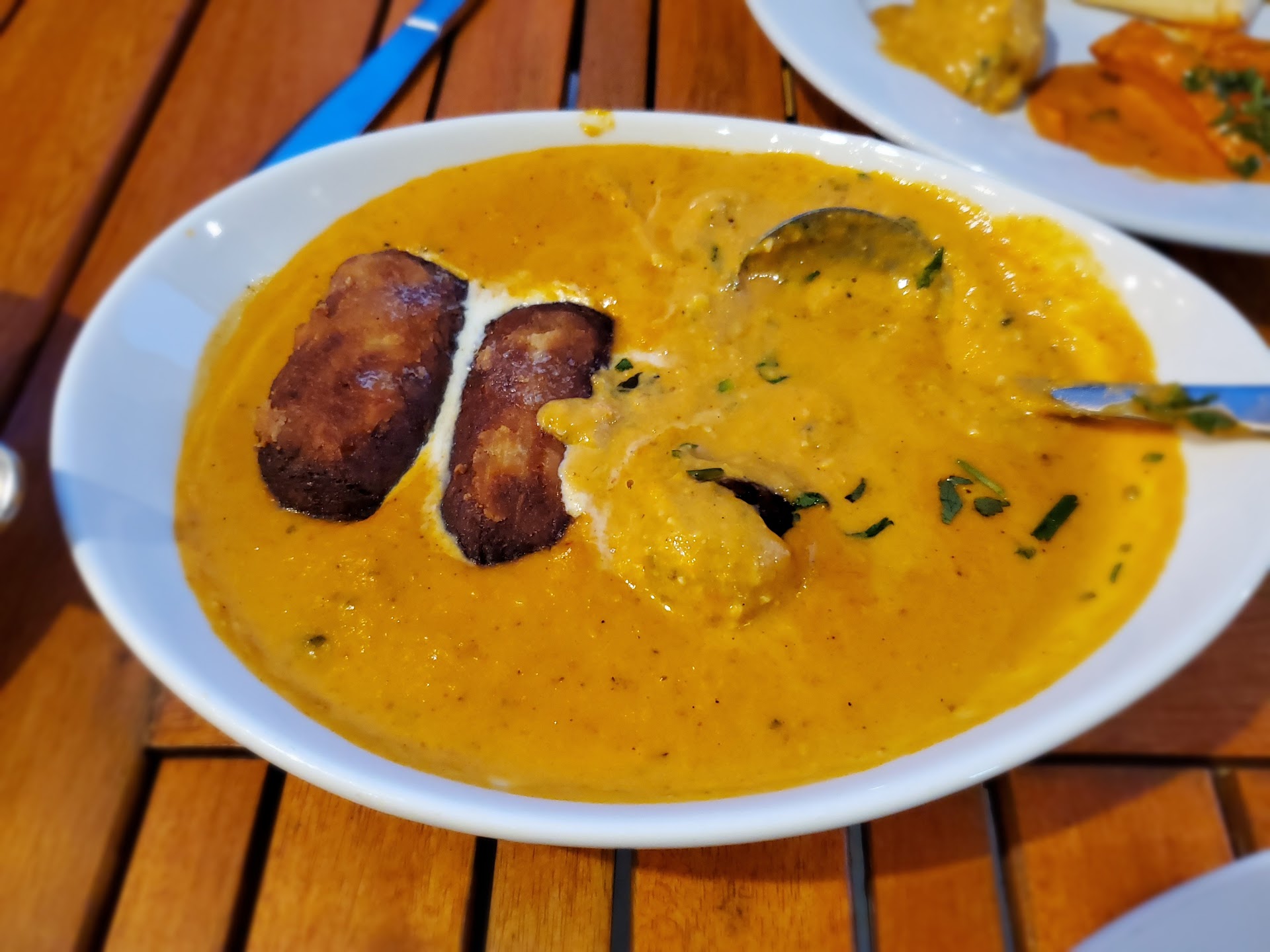 Restaurant is not too big but also has outdoor seating to accommodate large party. They accommodate small pets for outdoor seating. Staff is very friendly and accommodating. All staff were wearing masks to take the necessary covid precautions. We sat outside to enjoy the weather. However after dusk there were lot of mosquitoes outside as there are no bug repellent placed outside. If you plan to sit outside then wear pants or finish your meal before dusk. They have good food varieties and everything we tried was delicious. We informed them about nut allergies and they took extra precautions for all food. Since they make everything fresh, they were very accommodating to adjustments. In general their food spice level is mild, so if you like a lot of spice then let them know early to make it extra spicy. For starters we had Chicken and Paneer Tikka. The paneer tikka came a big square cubes and were very nicely flavored. Chicken was soft and mixed with flavored onions. Vegetable Madras is their specialty and you have to try it. It was one of the best dishes of the night. If you like eggplants then you have to get Eggplant cherry tomato. It was very flavorful. You could hardly tell it was eggplants. Dal Makhani and Butter Chicken was good as usual. Garlic Cilantro Naan was also very good. Their palak paneer is made from fresh spinach. It had good flavor and big chunks of Paneer. Overall the food is not very creamy and heavy, unlike other Indian food.