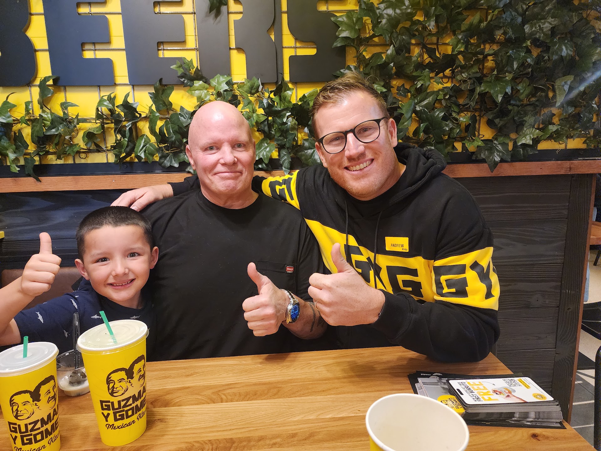 Wow! Just Wow! My wife, Son and I went to the grand opening of Guzman y Gomez Mexican Kitchen in Buffalo Grove tonight and we were blown away by the customer service, friendliness and kind treatment we received from everyone. To start, because the parking was a so packed, because of the of it being the grand opening, I was not able to park in the handicap parking (having hip replacement in 5 days) right in front of the entrance but on the other side of the restaurant. As we walked to the entrance there was a super long line out the door and I knew I would not be able to stand in that long line to get in the restaurant, but I ran into Andrew (first picture), who is the head of US operations for the restaurant chain, and he, knowing my situation, took us straight in to bypass the line so that I could sit soon. Andrew even offered to have my vehicle driven to the handicap space in front of the restaurant! Then as we sat to enjoy our dinner we met Evan (second picture) who is the owner's twin brother who talked with us for a good 20 minutes and even gave my son a pair of Guzman y Gomez socks that are only available in Australia! And to top it off we met Tom (third picture) who is Head of Digital Productions for Guzman y Gomez in Illinois and he too spoke with us for quite a while and he even went and got us a dessert for each of us, on the house. Now-a-days customer service is lacking so much and Guzman y Gomez is the exception and makes you feel right at home! And as for the food it to is outstanding and again was a pleasant surprise that on opening night they were able to get orders correct and not have to wait to long for the order to be ready, and we are talking all day they were swamped with customers. All the food we had was very delicious and the restaurant's atmosphere was spot on with music playing but the restaurant was not loud so we could talk normally. For a not-so-usual great customer service experience and outstanding food as well you can't go wrong with...