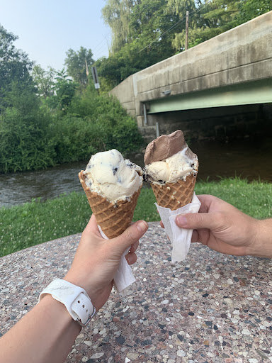 This Mennonite-owned business has completed renovated the decaying Cowan mill into a wonderful location. There is drive through service as well. The building looks great and you can enjoy your ice cream on chairs or benches right next to rapid run! They have really done a fantastic job restoring the old mill building, that was on the verge of needing tore down, into a cute modern shop. The staff is always very friendly.