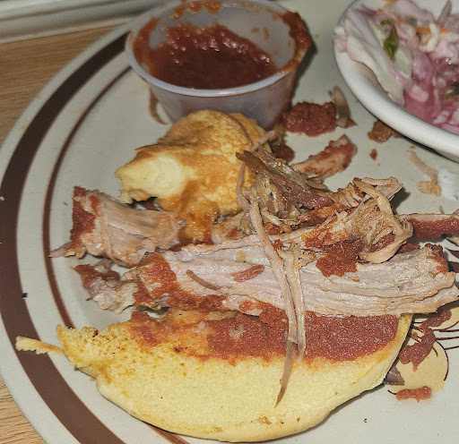 Read moreWednesday 07/10/2024 1:00P.M. Wife and I stopped by. She loves their Fried Chicken. We have stopped here a number of times over the years. I personally never cared for the place. My opinion: Dank and Dirty. Barbecue (all types) C- at best. This proved out once again today. Wife wanted Fried Chicken and since I hadn't gone with her for awhile, I decided to go. "MISTAKE"! The area of the first table we sat at had a stench that was unbearable. It literally smelled as if they were Smokin' Live Toads in the dining room. We moved. The other side of the wall had a diminished odor, but bearable. Wife ordered Fried Chicken Entree. Requested "ALL" White Meat. She received the regular order of mixed Dark and White. Told the Server and nonchalantly she said I will take money off of your tab. What about replacing the pieces? We could care less about a discount and more about getting what we ordered. I ordered Brisket Philly Cheese Steak. Good Smoke, but as dry as the parched Earth. Look around....The floor was covered in filth, crumbs and paper. It appeared to not have been cleaned all summer. ATTENTION: Butler County Health Department...this needs fixed or closed. Dank, Dirty and Disgusting! "Our...