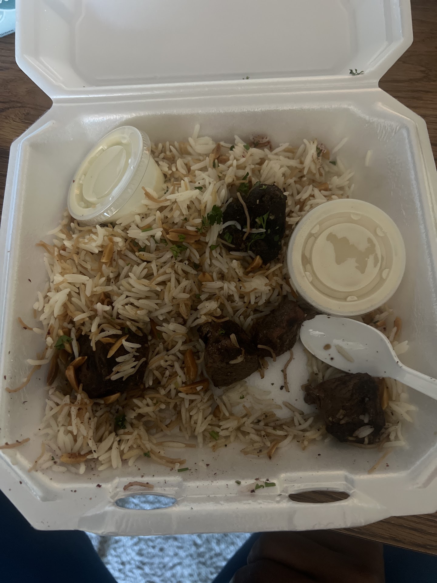 Read moreDETAILED REVIEW: I have to agree with other reviewers regarding the 5 stars. As soon as you walk in you'll notice how clean and organized the restaurant is, and then you're greeted by one of the super friendly owners! I go hard on rotisserie chicken so I had to try that, and for my sides I had some hummus and basmati rice. The chicken was SEASONED WELL and had some crispy skin, enough said!! The hummus, served with pita bread was fresh and plentiful, and added balance to the hot chicken and rice. The rice was served with slivered almonds and vermicelli (noodles) mixed in, which was tasty. OVERALL, the food and atmosphere is very good, and the SERVICE IS EXCELLENT, which isn't the norm these days. I'll be back to get dinner for the family, and I look forward to trying the shawarma and mixed grill. OH I FORGOT about the pastelitos I ordered to-go for my daughter, which seemed more like an empanada to me. They were VERY TASTY, and sort of reminded me of Mr. Vargas (RIP) from Connecticut St. RECOMMENDATIONS: Rotisserie chicken and pastelitos. SUGGESTIONS: I think adding lunch specials, like smaller portions and rice bowls would be nice. Also, if the ownership can find a way to reduce the price of their chicken, and try to make profits on volume I think more neighborhood residents will support them. Keep the prices the same for your more authentic dishes. I know it's tough owning a restaurant right about now, but better...