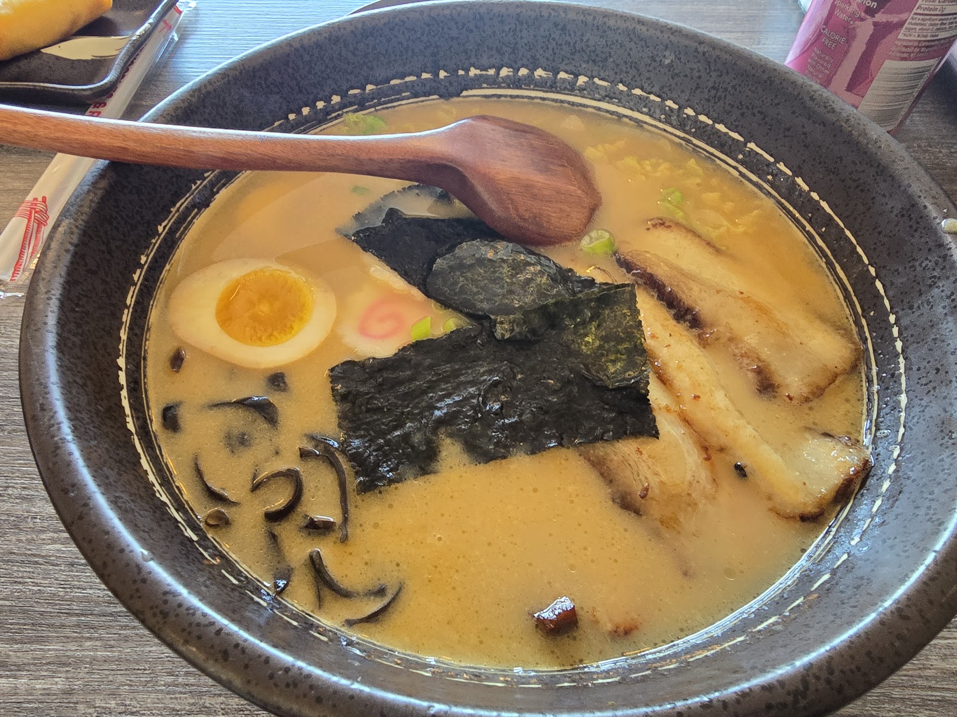 We stopped in after work for dinner. We got the vegetable spring rolls, crab rangoon, tonkatsu ramen, dry tossed rice noodles with minced pork, passion fruit bobo green tea, and mango pomelo sago tea. The appetizers were okay and very typical for an item that is available from frozen. I would like to see house made vegetable spring rolls. The Ramen had a delicious and balanced broth. The noodles were cooked perfectly with a bounce on each chew. The chashu (pork belly) was flavorful and tender. I would definitely get it again. It was also topped with ear mushrooms, nappa cabbage, scallion, nori, fish cake, and soy sauce marinated medium boiled egg. The tossed rice noodle had a kick, but it was a good spicy topped with minced pork, scallions, corn, cucumber, and soy sauce marinated medium boiled egg. Note: it is a peanut butter base sauce. The cucumber gave the dish a reprieve from the building spiciness. The was plenty of food where we decided to finish the ramen dish and take the rice noodle home for lunch tomorrow. We were plenty satisfied with the meal. We ended our dinner with Boba. The passionfruit was tart and refreshing. The mango tea was creamy and paired beautifully with the spicy rice noodle. Note: we requested no additional sugar as the fruit syrups made the drink appropriately sweet. We will definitely be returning and highly recommend for first-timers. Also, the staff was friendly, helpful, and...