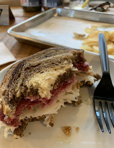 In between two slices of marbled rye smeared with “beer mustard” (full of intact mustard seeds that added great texture and mouthfeel) is a few thick slices of perfectly spiced and cured corned beef- tender and meaty. Atop the beef was a slightly crunchy sauerkraut- lighter tasting, so the meat’s flavor could really shine through. I am not usually a sauerkraut fan, but this one made a great accent.