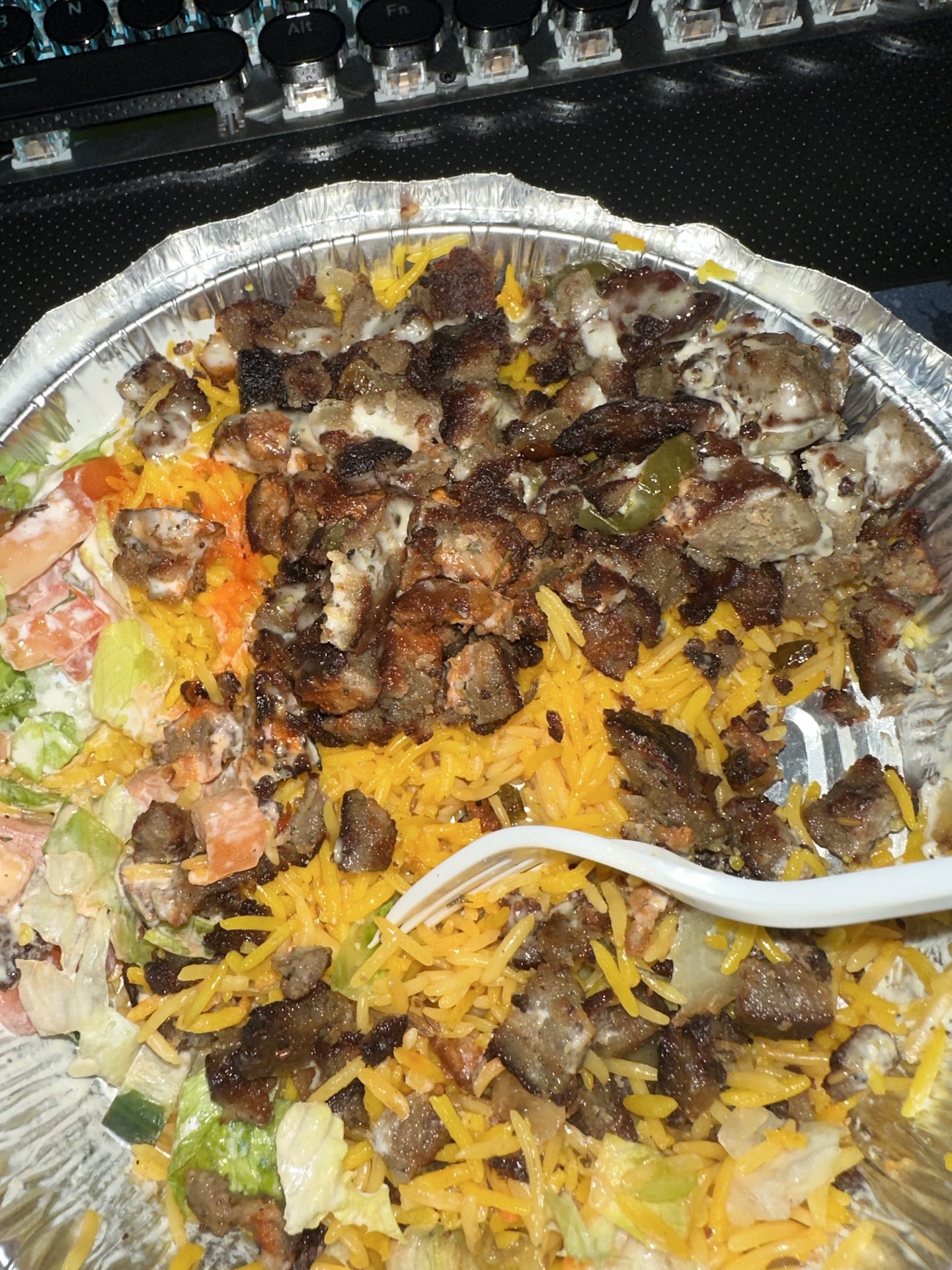 Read moreI didnât want to give this 1 star but had to. First off had many over rices from different places and I always order the same thing. I had high expectations of this place for the over rices after reading the reviews. I ordered a lamb over rice with extra lamb and extra white sauce. As you can see on the picture there is barely any extra white sauce actually barely any white sauce and I wouldnât call it extra protein at all. There again the lamb was over fried and burnt, the texture is really annoying to munch on. The last straw was I got fried chicken, I saw they brought a new batch of fried chicken so I thought to give it a try. But unfortunately that was disappointing as well the chicken was a bit undercooked and some of the batter was not even fried properly. I get it the store was busy but please pay attention to your customers food order as well as even if itâs busy make sure your dishes are cooked properly. Anyways not everyone has the same experience so this was just my experience. Try out at your own. But unfortunately this store...