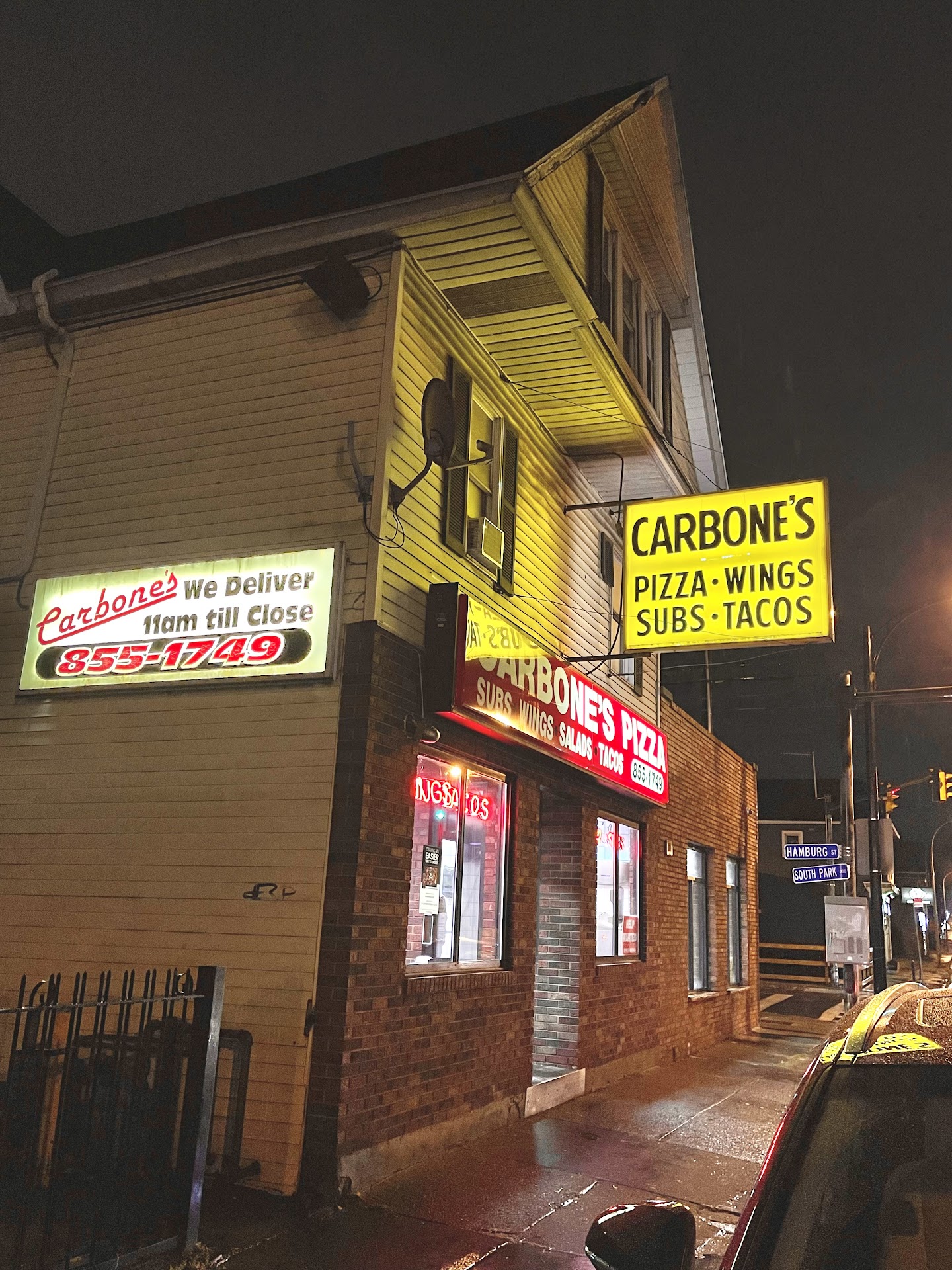 Read moreI was hosting a birthday party for my son, so I decided to purchase a big order from Carbones Pizza's South Park location! I ordered 3 party pizzas & 150 chicken wings w/3 different sauce flavors; 50 lemon pepper, 50 honey mustard & 50 barbeque. The 3 pizzas had various different toppings; one had double cheese double pepperoni; the 2nd one had double cheese, pepperoni, sausage, and onions; and the 3rd had double cheese, pepperoni, & mushrooms. We looked forward to enjoying our party w/great food & good memories, but we were greatly disappointed! The pizza was thick & gooey, as if the dough was not totally done. The slices were very heavy, & fell over on top of other slices within the box as we tried to lift them out. The sausage was gross, & tasted lika some sort of foreign object. Try as we might to like it, the pizza's were truly GROSS! I found out later that guests were secretly wrapping their pizza in napkins & slipping it into the garbage can, so as not to hurt my feelings! The chicken wings were hard, dry, & overcooked. Some were actually burnt, and you could see and taste the burnt parts. We also did not get celery sticks with our 150 wings. I made a huge sacrifice and spent $250.00 for food that was INEDIBLE! To top it off, I got very sick that evening. My stomach cramped for hours, and I vomited throughout the night. Some other guests said their stomachs were upset too! I am EXTREMELY DISAPPOINTED in the poor quality of the food I threw my hard earned money away purchasing @ Carbones Pizza & Subs on South Park! I strongly caution anyone to be careful taking the risks of eating food cooked and sold from that...