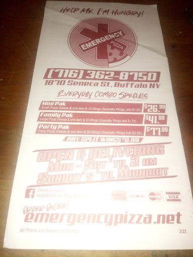 Hands down some of the best food in the pizza and wings sector of this wonderful City. The pizza is stunning fresh and portions are awesome. The wings are absolutely amazing jumbo and perfectly sauced. I have tried a number of the specialty items as well, that you typically don't find in many pizzerias .... The house made jumbo meatballs are stunning whether you get them with the spaghetti or on a sub. The barbecue ribs are perfect juicy falling off the bone and melt in your mouth. The Friday fish fry is one of the best I have had anywhere in the city. DeVille parmesan and chicken parmesan are also absolutely stunning. Large portions and perfectly seasoned with plenty of cheese and herbs. The eggplant parmesan was a big surprise it was absolutely bursting with flavor and a very nice portion size. I have had a few of their subs over time always super fresh , flavorful with hefty portions of meat that I'm told are sliced fresh ... that must be the case because these are some of the best subs in the city. And the best thing about this restaurant is that they are open until 2:00 a.m. !!!!!! Not many options at all after 10:00 p.m. in Buffalo anymore. The only downfall is they add a 4% charge on orders after 10:00 p.m. which makes no sense to me at all. Also , their hefylty delivery charge is between three and five dollars depending on your distance from...