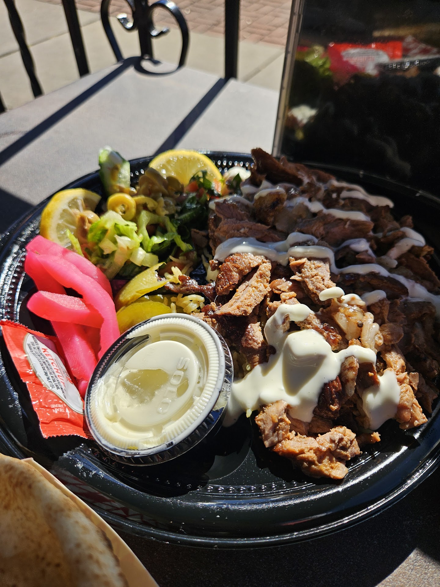 Your experience here is directly proportional to what you decide to order. I should have ordered the shawarma or falafel or a kebab, as those seemed to be delicious in both appearance and taste based on what the others in our party ordered and on what we saw. However, I ordered the chicken caesar salad because I had a craving for a healthier option. My partner got the cheese steak on the cashier's recommendation and assurance that it could be made without onions. The caesar salad came DOUSED in some sort of goopy sauce which did not even closely resemble caesar dressing. Type of dressing aside, there was entirely too much, every single leaf was drenched in it. It made the whole bowl soggy and unappetizing. The cheese steak sub was similarly drenched in a mystery goop/mayo sauce. Not only were all of the ingredients sopping with it, there was an extra thick drizzle all over the top. I had to wipe it off with a napkin and still whenever you bit into it, more mayo sauce would squeeze out in abundance. What's more, the sub had onions all throughout, contrary to the cashier saying it could be made without (my partner has an onion allergy, so I had to eat his choice and he had to take mine). Atmosphere is good, and I'm sure other food options may be better, but in my opinion this restaurant might want to rely less on thick mayo-ish sauces or at least cut back on the amounts. The food was heavy and just not very good when it's oozing that much. Likely won't be back unless it's to try something that we know won't come with all that sauce, but we also don't feel we can trust that the things we ask to be left off won't just be added on anyway... Wish them the best, but...