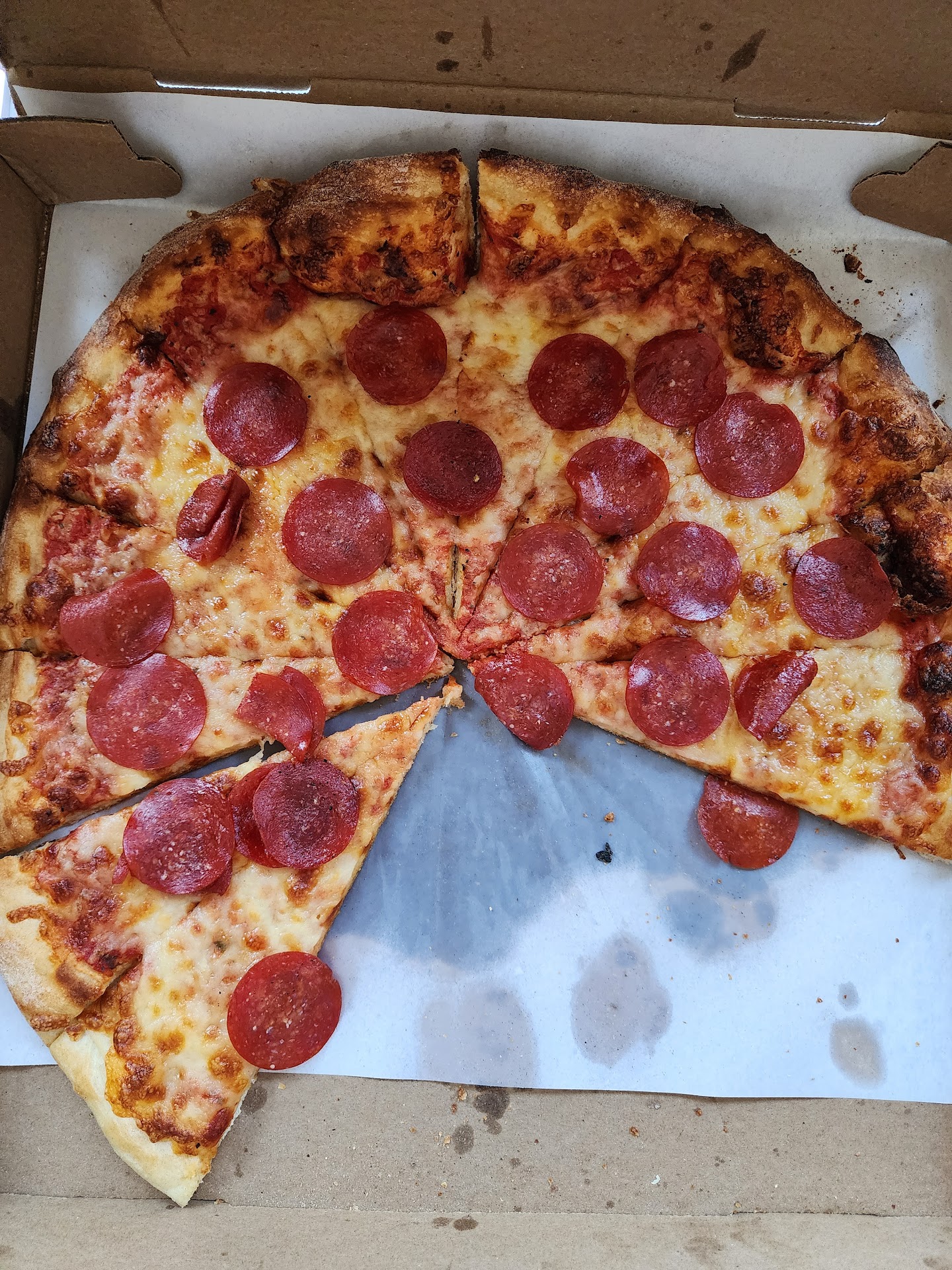 The best pizza I had…especially if you are looking for veggie pizza then this place is a good one. They have veg pizza by slice with all my favourite veggies on top and their French fries are soo yumm.This place is small with 2-3 tables inside and outside. Good for takeout. As it’s me & my partner, weather outside being cold, we decided to have the hot pizza n fries there itself.