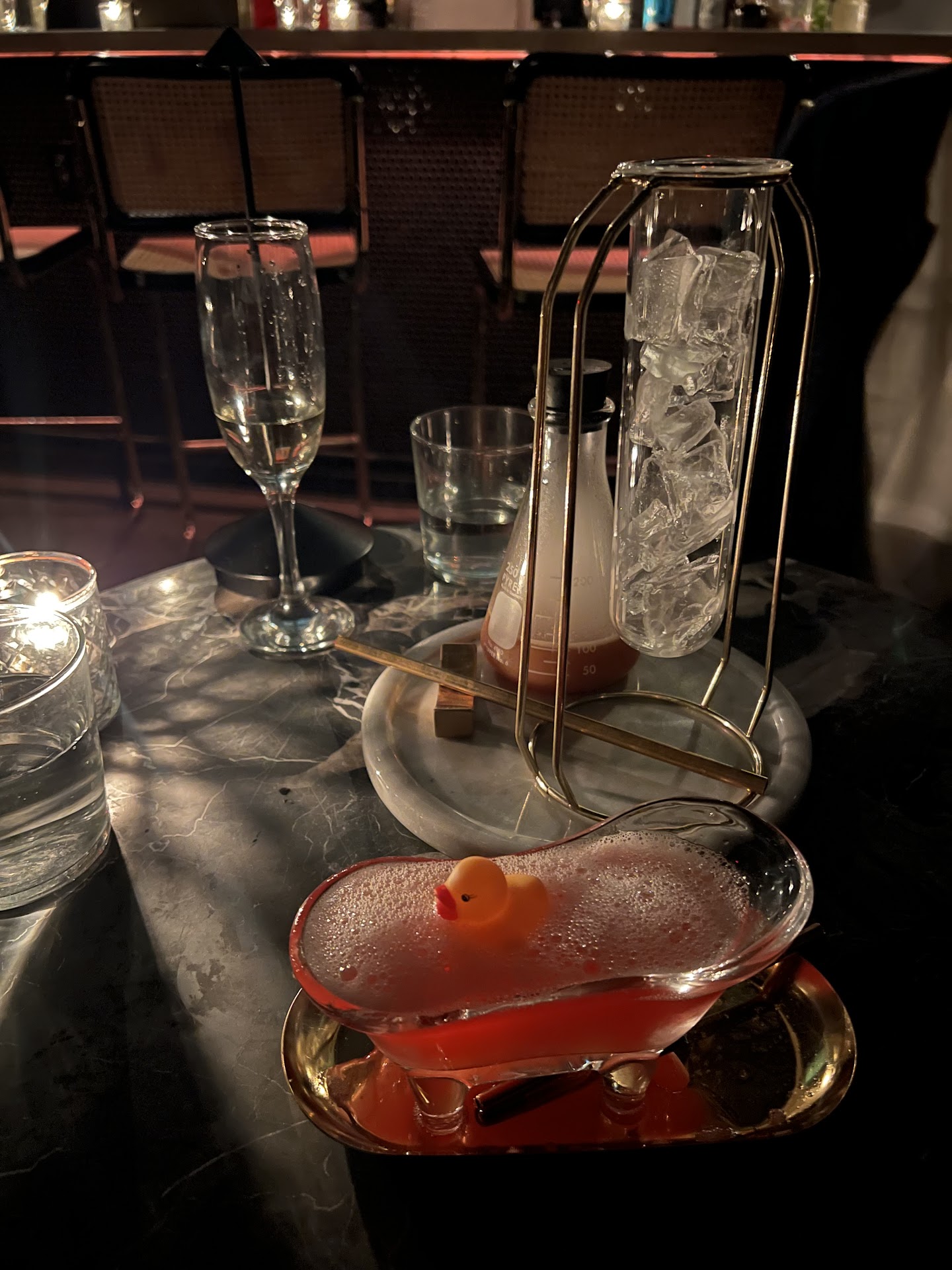 My drink of choice was ROOM 237! Which was a Mexican gin bubbly concoction which was so delicious! ( especially since I am not regularly a gin kind of person) It also came in a bathtub with a rubber ducky!!! ( like the bathroom scene in âthe shiningâ!! Hence the name of the drinkâď¸)