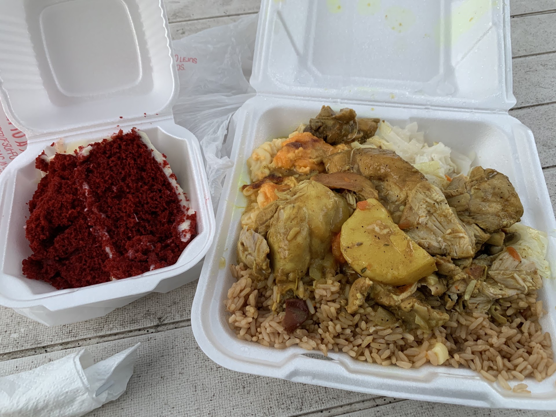 Read moreOrdered delivery as my first experience here. Prices are reasonable and the portions of sides are gargantuan. The two main dishes ordered were fried chicken and jerk shrimp. The jerk shrimp with peppers and onions were cooked well, had great spiced flavor, and a respectable spicy heat. The cabbage was well flavored without being overpowering in any way.