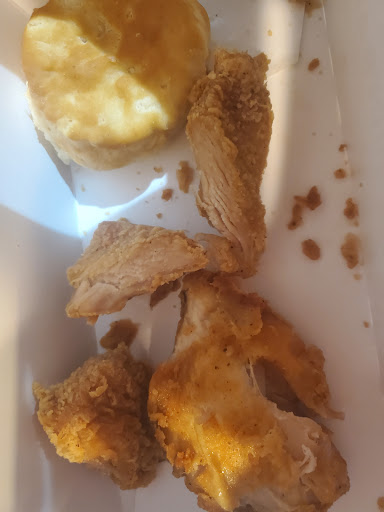 This place is a complete joke. This is the second time Iâve picked up food from there, and it will be the last. First, the place is FILTHY. Trash overflowing, litter and debris on the tables and floor, floor by the pickup area was so sticky my foot came out of my shoe! And the serviceâŚworst ever. Bunch of people waiting for their food, some were delivery drivers, others were just regular customers who had ordered pickup. One lady said she had been waiting 30 minutes. I waited 10 minutes before anyone even acknowledged me or asked for my name for pickup. I saw a man at the register walk in shortly after I arrived. By the time I left with my food, he hadnât even been acknowledged, or waited on. When I finally was able to give them my name, I was basically met with a blank stare, followed by an eye roll, followed by the slowest walk ever to the takeout area. She picked up the bag from the shelf and basically tossed it on the counter just out of arms reach. I said, âis that mine?â She just pointed to the label on the bag. When I asked for the drink that comes with it she said, âthat doesnât come with a drink.â I said, âwell, itâs a meal, so yes it does. I ordered an iced tea.â She said, âoh, thatâs why. We donât have any iced tea.â And then she walked away. I stood there for another five minutes to see if they were going to offer me a different drink, but she literally disappeared into the back. I went out to my car, got my water bottle, and came back in and filled it up with my own drink. Nobody even was paying attention. Everyone was in their own little world with their AirPods in. When I got back out to my car, I opened my bag and the food was cold, my fries were soggy, there was no biscuit, and instead of the breast that I ordered, I got tenders. Cold, dry, hard ones at that.