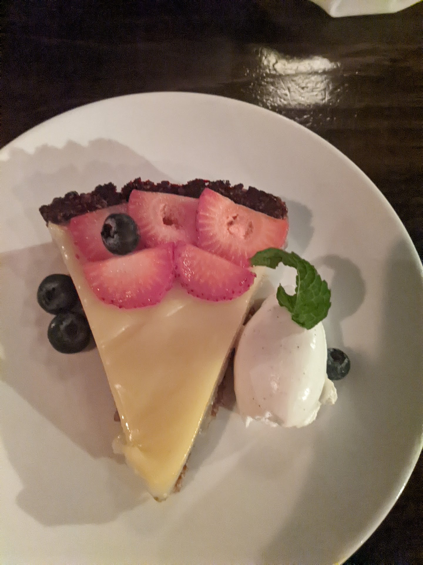 Read moreReally nice atmosphere! Dim lighting, space between tables, privacy curtains between tables in the brick cove, also seating on the upper level as well. Brick columns with candlelight. Candle light on the tables. Huge selection of whiskey, all the way up to the ceiling. This review is based on the following food. Beer cheese soup, brussel sprout appetizer, smoked carrot appetizer, brisket ravioli, and lemon tart dessert. My friend got the lobster tail and said it was delicious. We both had the smoked carrots which were decent ,although a couple of the carrots were hard. They were not the most flavorful and they were not browned. We were comparing them to the carrots at the billy club, which are hard to beat. The brussel sprouts were good, nice flavor and browned crispy. The beer cheese soup was super flavorful, nice creamy texture, although the flavor was overpowered by the beer. The croutons on the top were really good, there were large chunks of bacon in the soup which were very fatty and chewy. The brisket ravioli fell very short. Just bland. The lemon tart was the most delicious lemon tart I've ever had. Very flavorful, the texture was so silky and creamy. Came with fresh whipped cream and a pecan crust which had a slight coconut flavor. Highly recommend trying that. Although I did get a second lemon tart to go, and that one was not as good as the one I had at dinner, the crust was a little overcooked which made it kinda bitter. I would definitely come back just for the lemon tart and the nice atmosphere. Service was great also. They have live music Thursday through Saturday. It's right downtown so parking could be a nightmare, there is a lot right next to it that you would have to pay...