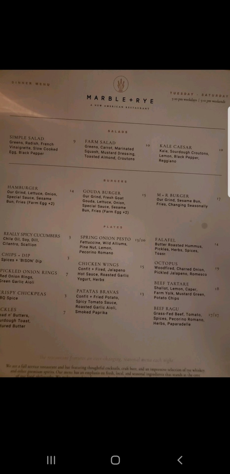 Read moreFriendly staff that goes the extra mile to enhance the dreamy experience of dining and drinking at Marble & Rye.