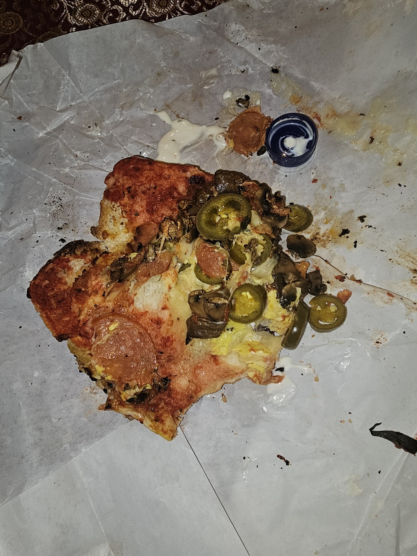 Read moreOkay, My order was for a large thin pizza with cheese, pepperoni, light onions, mushrooms, and sausage. A little too salty, otherwise very good!