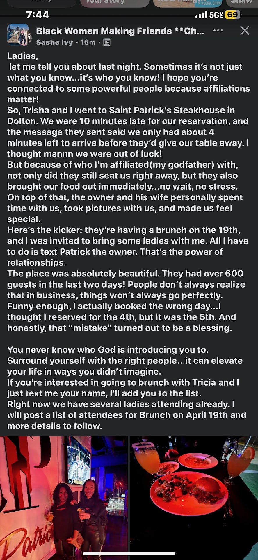 Read moreI’ve been to Patrick’s on multiple occasions & my friends & I love it but this past weekend the staff seemed very underwhelmed & slightly unprofessional for the amount of reservations booked. After 2-3 comments to staff about being given 4 stools for a party of 20 when we were previously told arrangements could be made we were accommodated for the size of our group we had booked for in the first place. A staff member walked off on us while we were trying to give back a misplaced order she hadn’t helped us the rest of the evening after that . Multiple plates were brought to our table that we hadn’t ordered & we felt that they were taking their frustration out on us because the order system THEY have . More bar tenders & staff are needed also a more diverse staff!! Lastly we arrived at 6:59 1 person in our group was told we can stay 2 hrs another person in our group with reservations was told 3 hrs & we were all told around 10:25 the 11pm reservation was here early & we had to leave the space . Hopefully they’ll improve don’t know if I’ll be back in the evening...