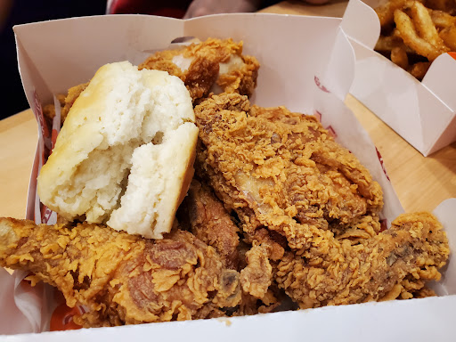 This place needs a lesson on business Managment and how not to lie to customers…waited in the drive through line for OVER 20 mins. Ordered my food saw on the screen what I ordered…I finally get to the window , of course the chicken was not ready (no biggie) so I got two other pieces that were fresh and tasty. I asked the manager if my two extra biscuits were in the box, he said yes, I look in the box because I can tell you this , I saw him pack the food and there was nothing extra. I then look in the box and saw no extra biscuits, he then gets me one biscuit, I told him I ordered two. This guy then argues with me about my extra biscuit! Sir, I ordered it and presumed I paid for it . After going back and forth with me , you’d think after having people wait 20 mins you would just give me what I ordered? No, this guy profiled me and assumed I was just trying to get a 1.49 item for free. No, sir I ordered it and was very clear… Maybe you as a manager should learn to train and MANAGE YOUR staff a bit better so they correctly take orders. This place is on pause .