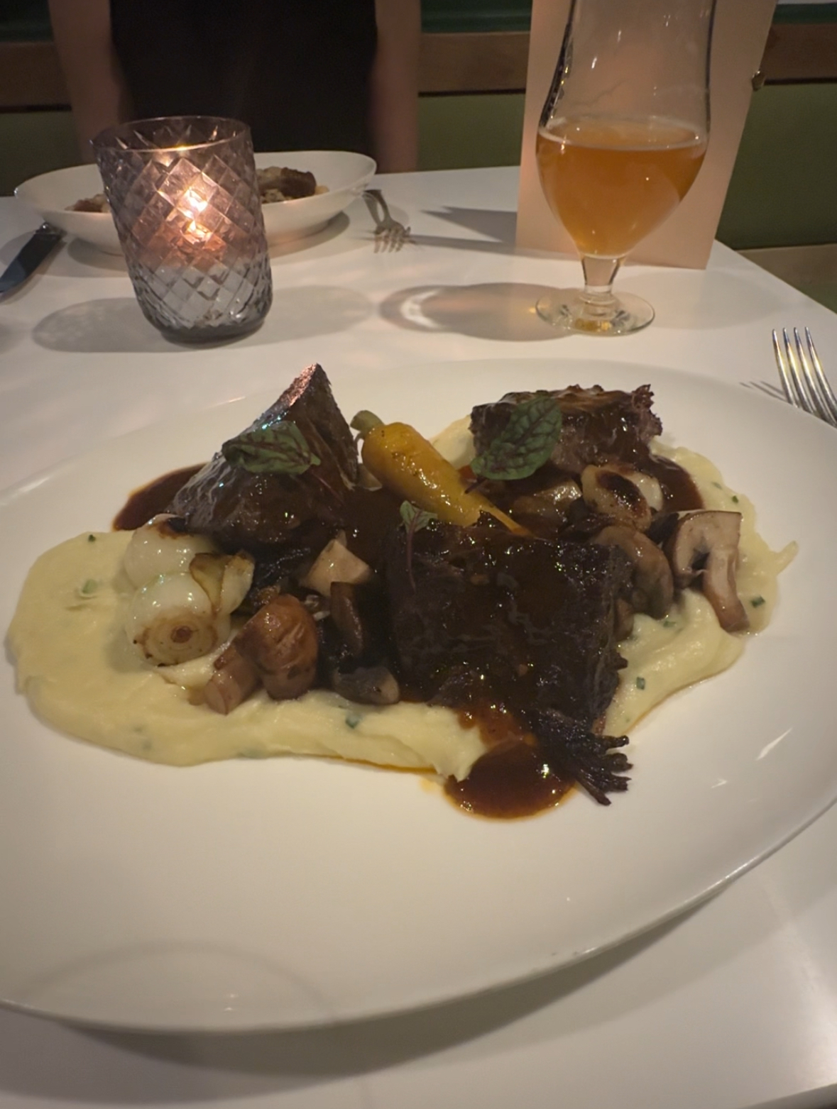 The service continued to deteriorate throughout our two-hour stay. Empty cocktail glasses accumulated on our table like artifacts in a museum of neglect, never cleared even as new wine was served. Our water glasses sat empty the entire evening, without a single refill. Most concerning was the pacing - we waited over an hour for our first appetizer, during which time our server paradoxically asked us seven times if we were ready to order our entrees, insisting "the chef likes to get the entire order in at once."