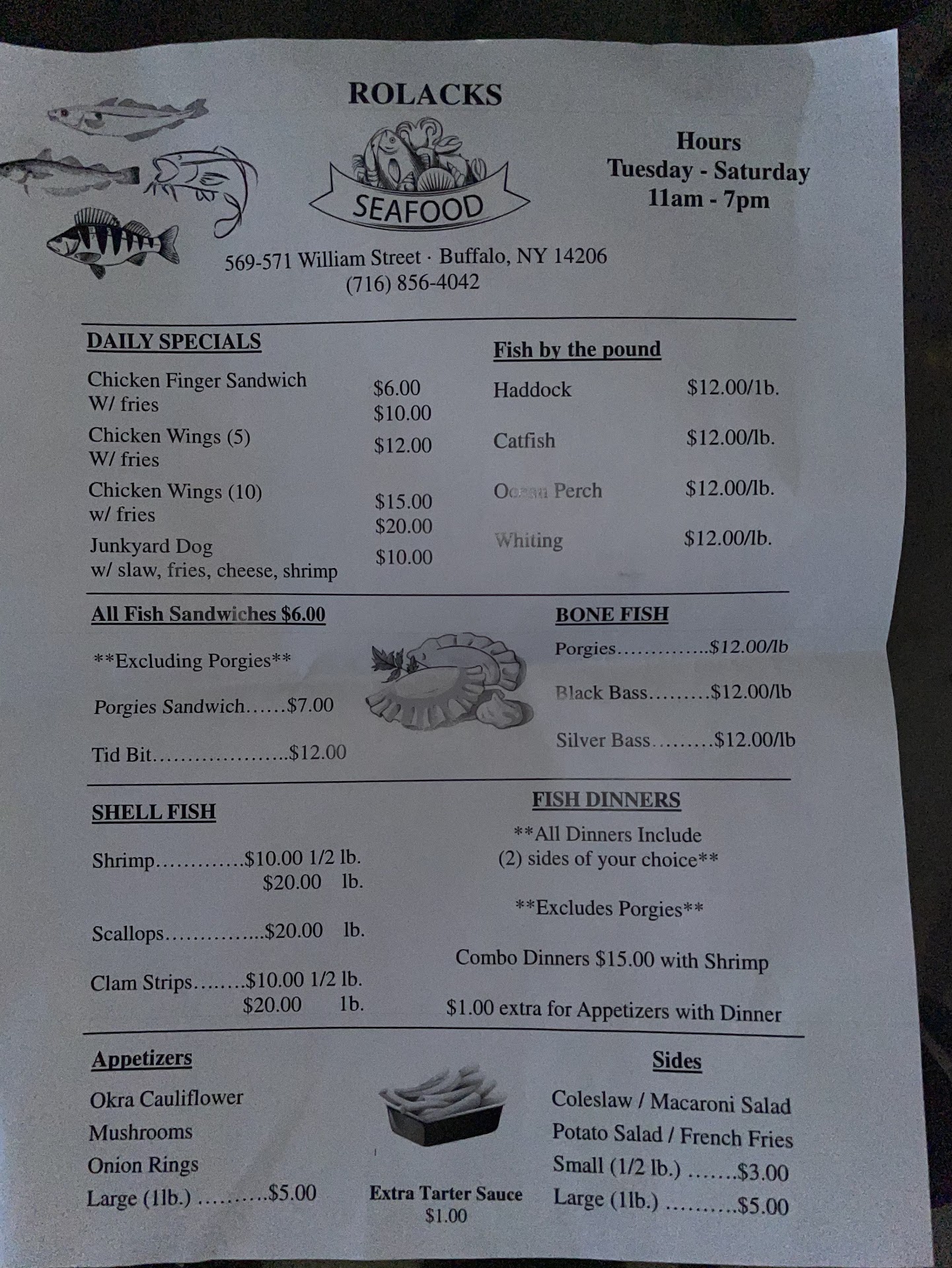 As one of the oldest fish markets in Buffalo I expected better service definitely better food what has happened first of all when I ordered I was told the price was $32.00 when I picked up he said $34.00 they went up I gave the guy $40.00 he gave me $5.00 back I said how much the guy said ooh we went up so I paid $35.00 as I think about it I think I was ripped off đ. The fish was falling apart breading crumbled of fries were cold mac salad was disgusting I been eating their since I was a teenager I'm 55 yrs old I guess the family letting grandchildren run it. At the rate their going won't be open too much longer. I will not patronage...
