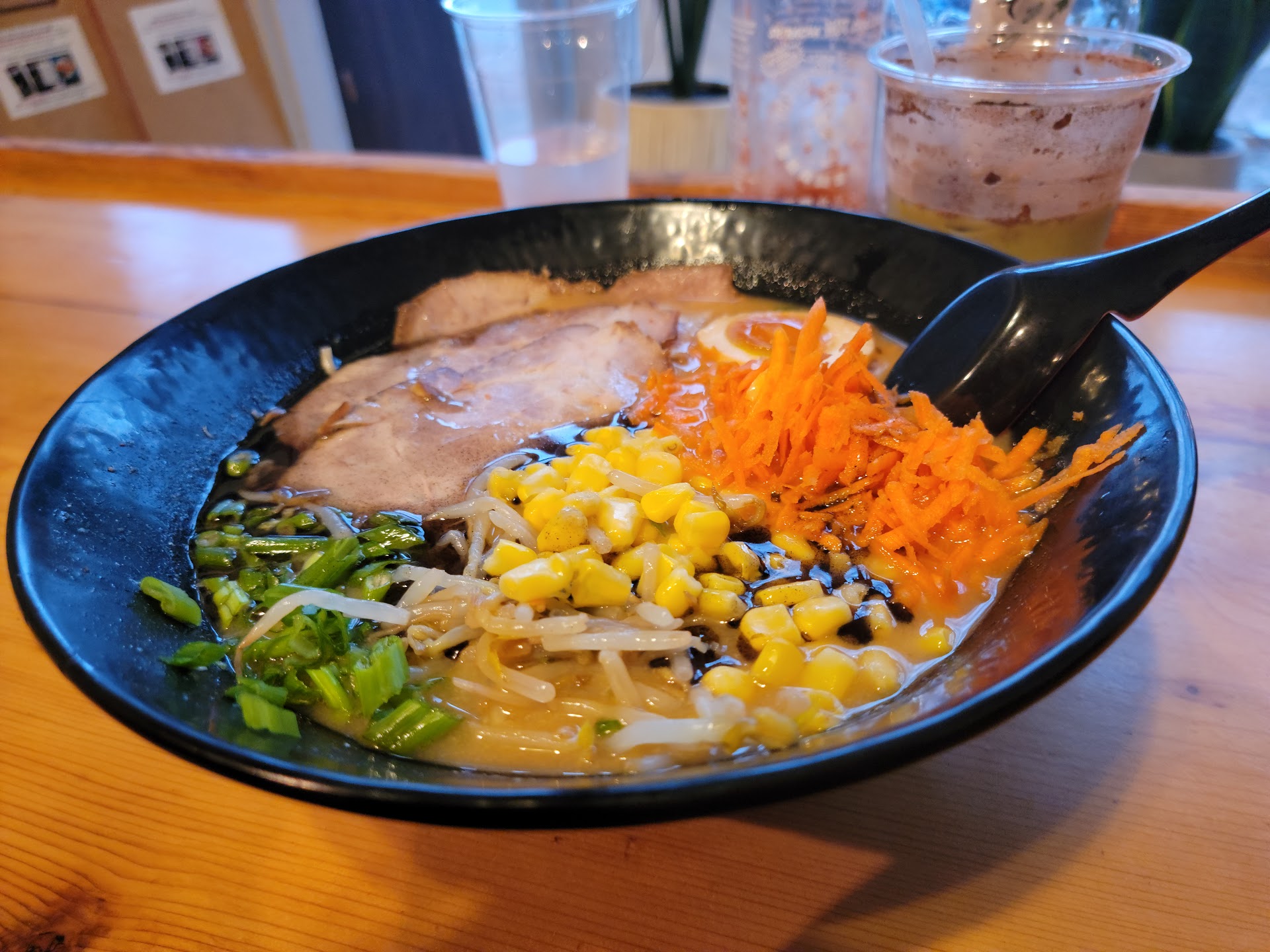 So, fast forward to getting home my food was cold by now so I just reheated the broth which wasn't a big deal. The food looked delicious but.....I was severely disappointed. We got the Sato Ramen and the Tonkatsu ramen. Both of them were lacking flavor, there was no strong umami or savory flavor. The eggs were not even proper ramen eggs, they were just soft boiled eggs. The only thing I can say that was good, which is the only reason it gets 2/5 stars is the pork. It was pretty tasty. Besides that everything was lacking in flavor.
