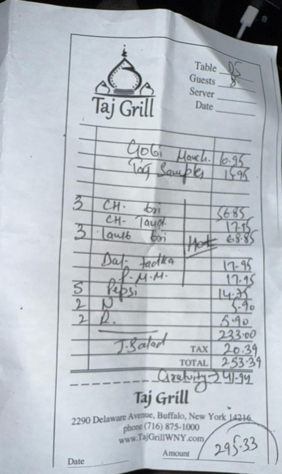 Adding to the frustration, Taj Grill imposes an extra 3.75% charge for those who choose to pay with a credit card. This practice is nothing short of a money-grab and demonstrates a lack of transparency in their pricing structure. It's deeply disappointing to see a business resort to such tactics, which ultimately undermine the trust and satisfaction of their customers.