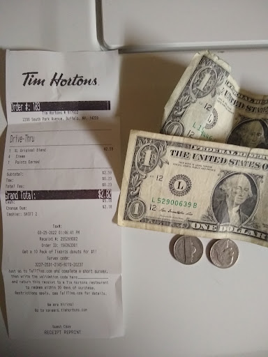 Read moreWorst Tim Hortons experience of my life. Just returned from the service and decided to get some Tim's. Waited in Drive Thru for 17 minutes which isn't usually a problem except for there was only 4 cars. Finally pulled up to the speaker and the order taker was disrespectful, not accommodating to any questions, and mocked my order which he then got wrong (Sausage Biscuit, gave me a Egg Muffin). Pulled up to the window to pay for it and the guy just stared at me with no introduction just a hand(no customer relations skills). Threw a crumpled up bag at me and slammed the window no have a good day, thanks for coming none of that. I understand it may be rough for them when they're busy, BUT they weren't busy and they couldn't put a smile on a clown's face!!! Horrible experience and wouldn't recommend if you like to have any kind of social experience, other than having stuff...