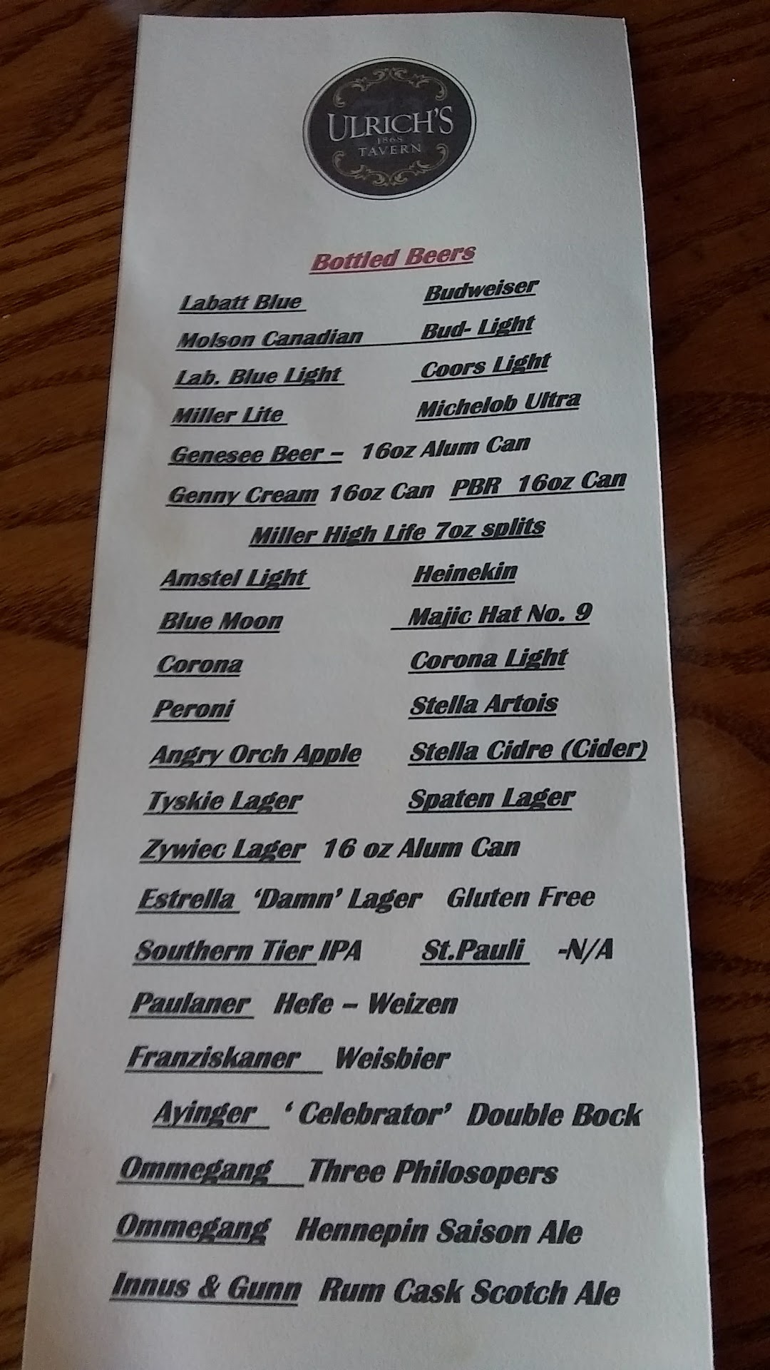 Many of us sat with empty glasses until we went to the bar to get refills ourselves. Even upon leaving there were only 3 other tables seated - on Good Friday at 8pm. I don't entirely blame the wait staff for the problems of this night, every part of the experience screamed management problems. It's strongly apparent after one evening that there is a lack of management ability, or a complete apathy when it comes to running this business. Ulrich's is some place I have to strongly recommend staying out of; unless owners or management change for the better this is another Buffalo landmark that will be closed...